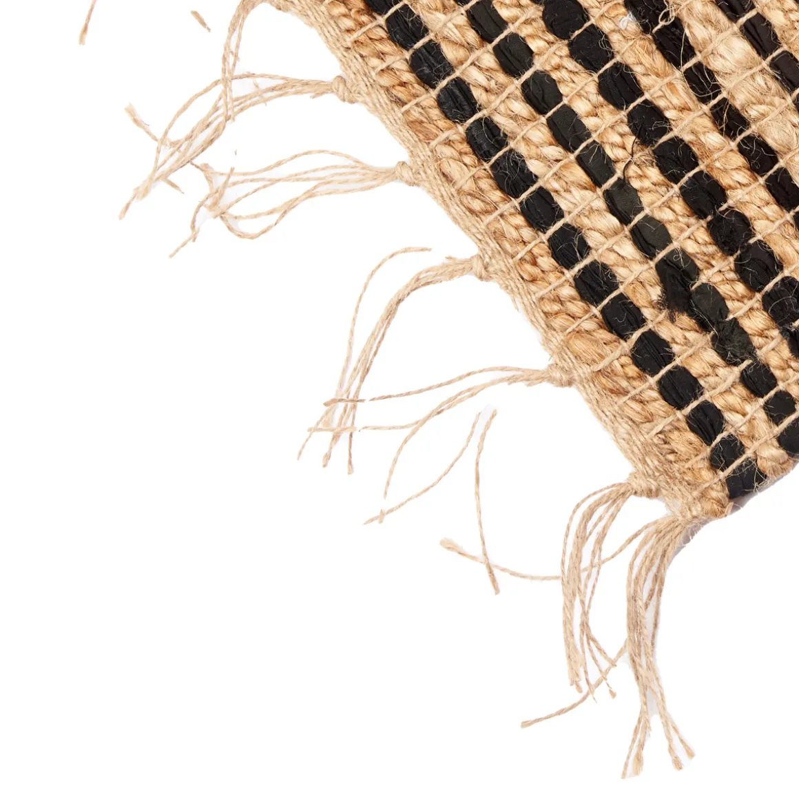 Alfombra de rayas negras 70x140cm | Encuentra en homastores.com todo tipo de alfombras para la casa. Alfombras para el salón, la habitación, alfombras redondas, etc. Tus pies te lo agradecerán y el espacio ganara una nueva dimensión con las propuestas de decoración para el piso. | Color: Natural y Negro | Medidas: 70x140cm | Material: Yute y Algodón