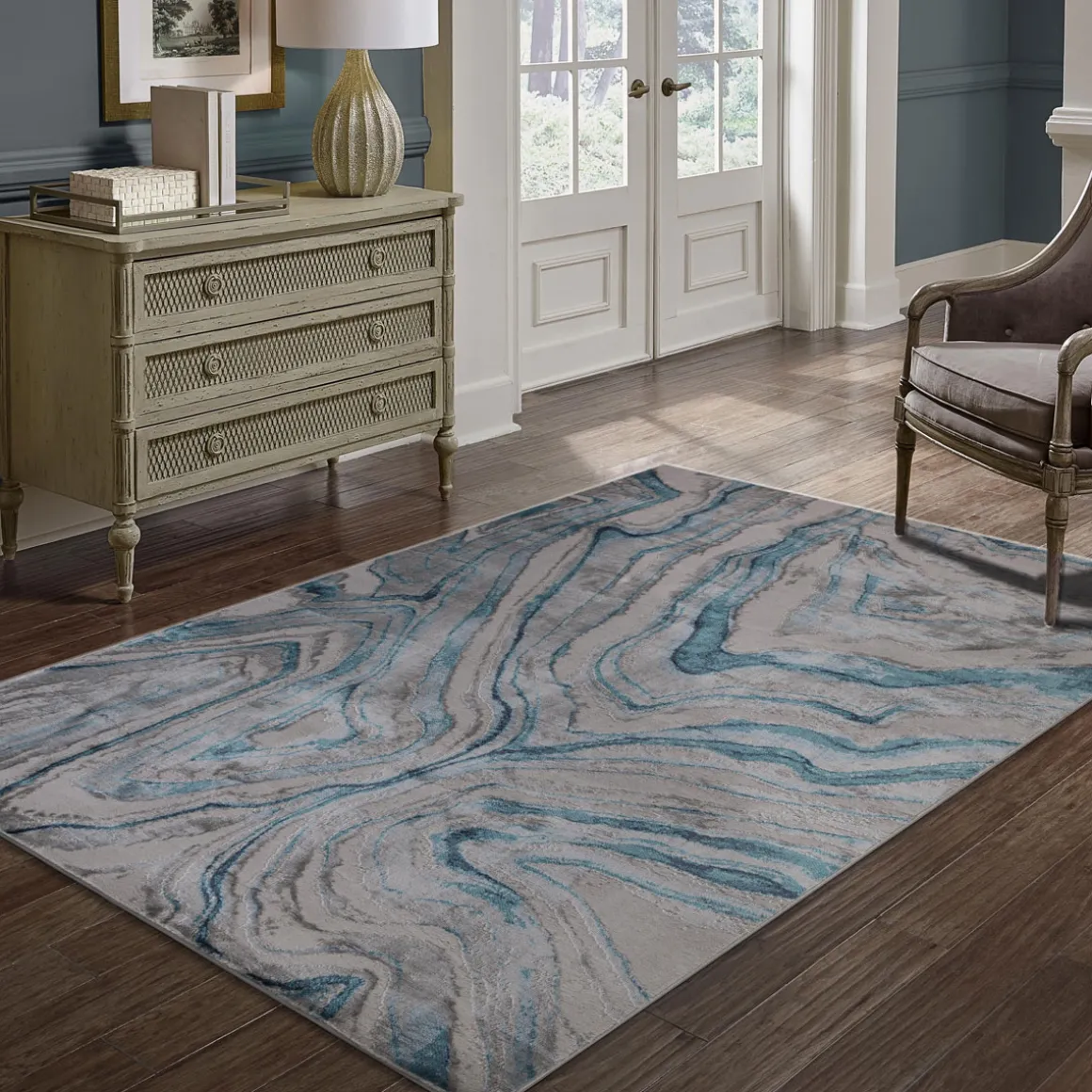 Alfombra Zaha Abstract 80x150cm | ¡En homa.es encontrarás alfombras para toda tu casa! Alfombras de salón, alfombras de dormitorio, alfombras redondas, etc. Tus pies te lo agradecerán y el espacio ganará una nueva dimensión con nuestras propuestas de decoración para el suelo | Color: Gris, Azul | Medidas: 80x150cm | Material: Poliolefina, Poliéster