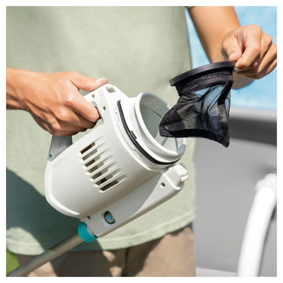 Aspirador De Piscinas Intex Manual Recargable | Para piscinas y spas | Diseño moderno | Funciona cuando está sumergido en el agua | 2 cabezales de cepillo intercambiables | Se apaga automáticamente cuando no está sumergido | Cable USB para cargar | Protección IPX8 | Bolsas para residuos: muy fáciles de limpiar bajo el agua | Tiempo de funcionamiento: 50 minutos | Tiempo de carga: 5-6 horas | Mango telescópico: 2.80 m | Potencia: 10 W/4 V