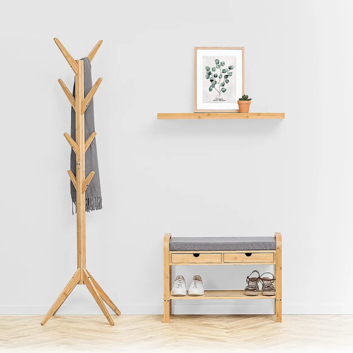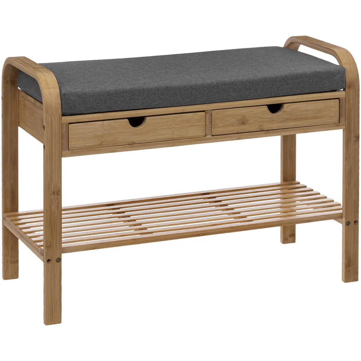Banco Con Estante Jano De Bambú | Conoce este y más artículos que tenemos disponibles para tu vestidor. ¡Ordenar y organizar tus armarios y vestidores nunca ha sido tan fácil! Descubre la gama de almacenaje hôma | Color: Marrón | Medidas: 55x34x74cm | Material: Bambú, Poliéster
