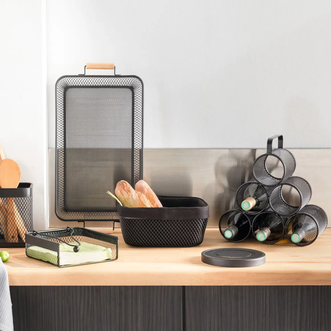 Botellero Mayaj Metálico 6 Botellas | 28×18.5x30cm | ¿Sabías que tu cocina puede ser el lugar más feliz del mundo? Echa un vistazo a nuestra gama de utensilios para una cocina llena de Happy Home Living. ¡Cocinar con los utensilios adecuados es mucho más fácil! | Color: Negro | Medidas: 28×18.5x30cm | Material: Metal | Marca: 5Five