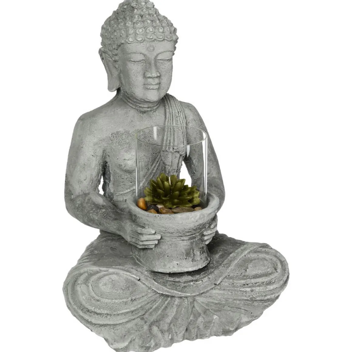 Buda Decorativo Gris De Cemento | 41.5x25x30cm | En hôma encontrarás los mejores complementos decorativos para tu hogar | Color: Gris | Medidas: 41.5x25x30cm | Material: Cemento, Vidrio, Cera
