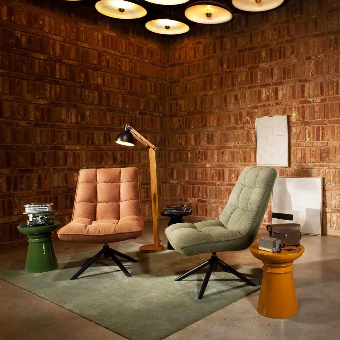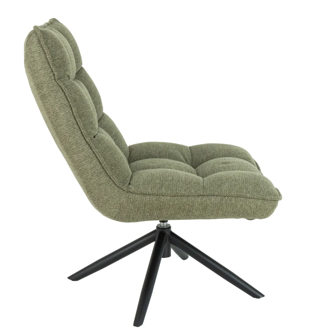 Butaca Mel Giratória De Tejido Verde Con Patas Metálicas Negras | Descubre las sillas y sillones que tenemos para ti. Los muebles Hôma están diseñados para Home Happy Living. Los mejores artículos de decoración están aquí. | Color: Verde, Negro | Medidas: 99x85x71cm | Material: Metal, Espuma, Tela
