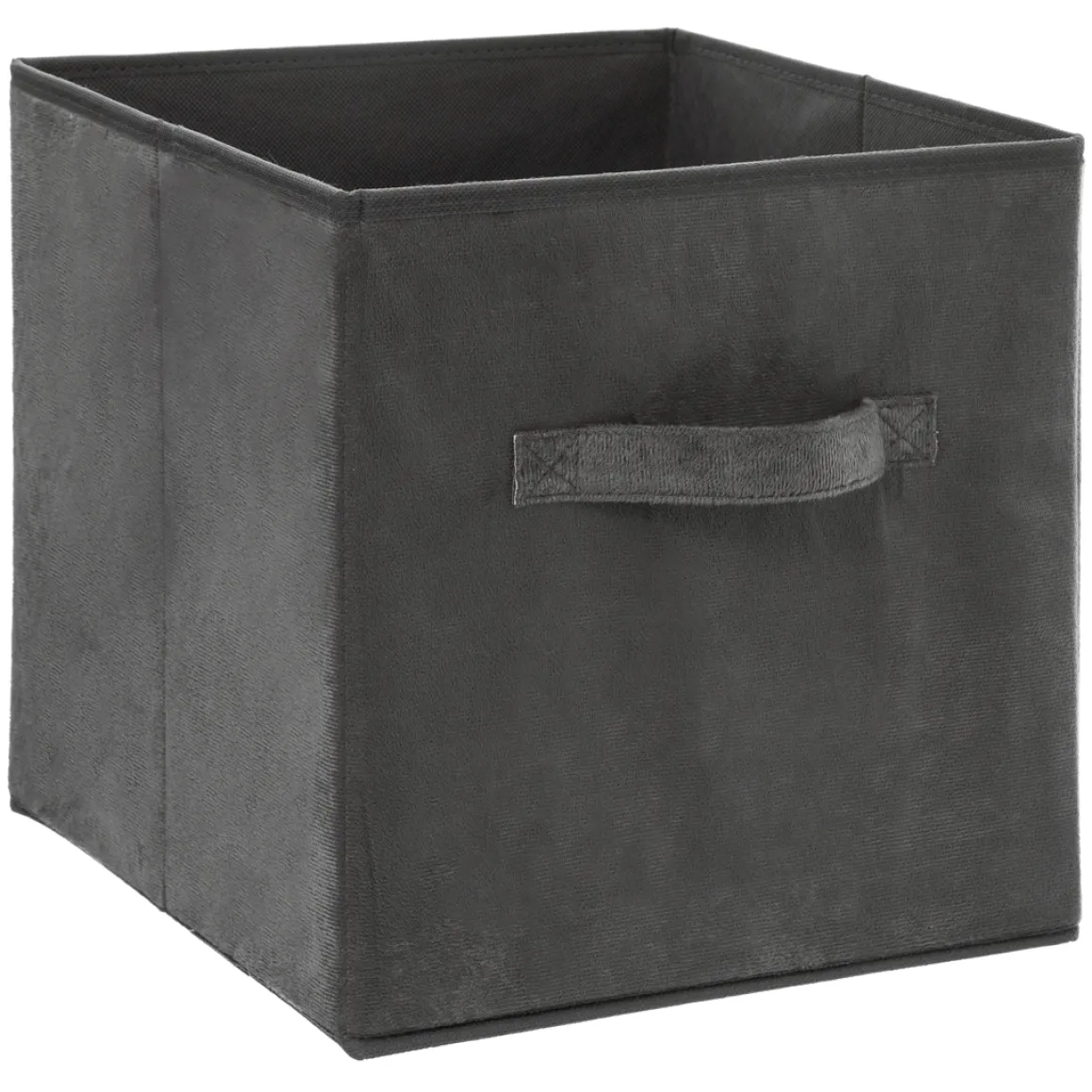 Caja De Almacenaje Terciopelo Gris Oscuro | Caja de almacenaje de la colección «Mixmodul», efecto terciopelo | Una amplia selección de colores y formatos que se pueden combinar y utilizar en las estructuras de las estanterías de almacenamiento de la misma gama | Su asa incorporada hace aún más práctica la apertura de las cajas, que funcionan como cajones en los compartimentos de las estanterías | Color: Gris Oscuro | Medidas: 31x31x31cm | Material: Cartón, Polipropileno, Poliéster