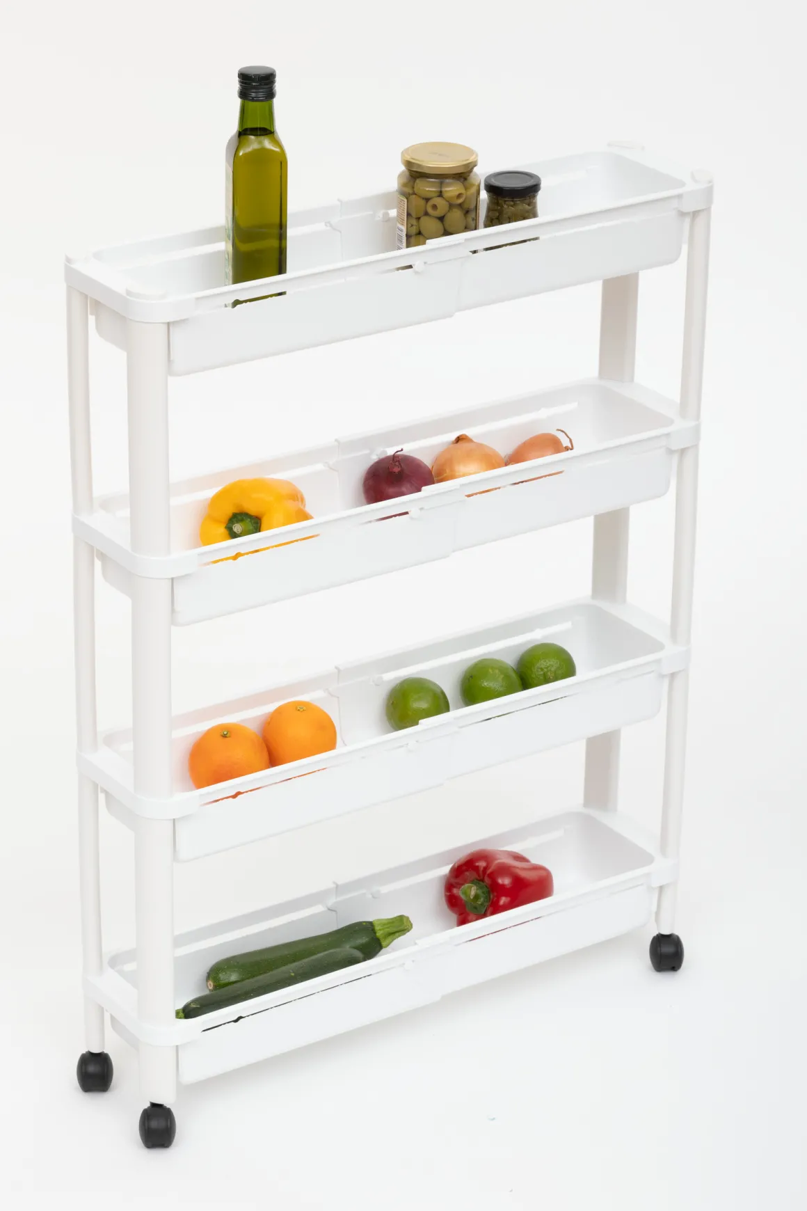 Carrito De Cocina Con 4 Cestos Extensibles Blanco | 78.5x15x37.5cm | La funcionalidad de la cocina es esencial y comienza por las soluciones de organización en la cocina. Desde el carrito auxiliar , la botellera, los cubos de basura, hasta cubos de reciclaje, encuentra todo en homastores.com | Color: Blanco | Medidas: 78.5x15x37.5cm | Material: Plástico | Marca: 5Five