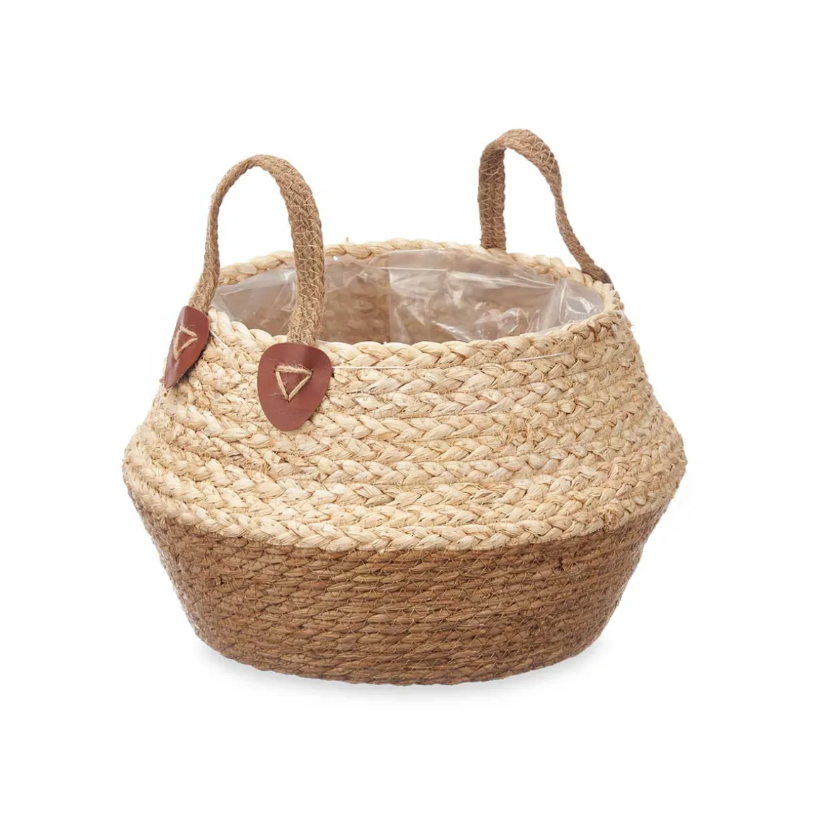 Cesta De Rafia Beige y Marrón 30cm | En hôma encontrarás una gran variedad de cestas decorativas para tu hogar. | Color: Beige, Marrón | Medidas: 31x30x30cm | Material: Rafia