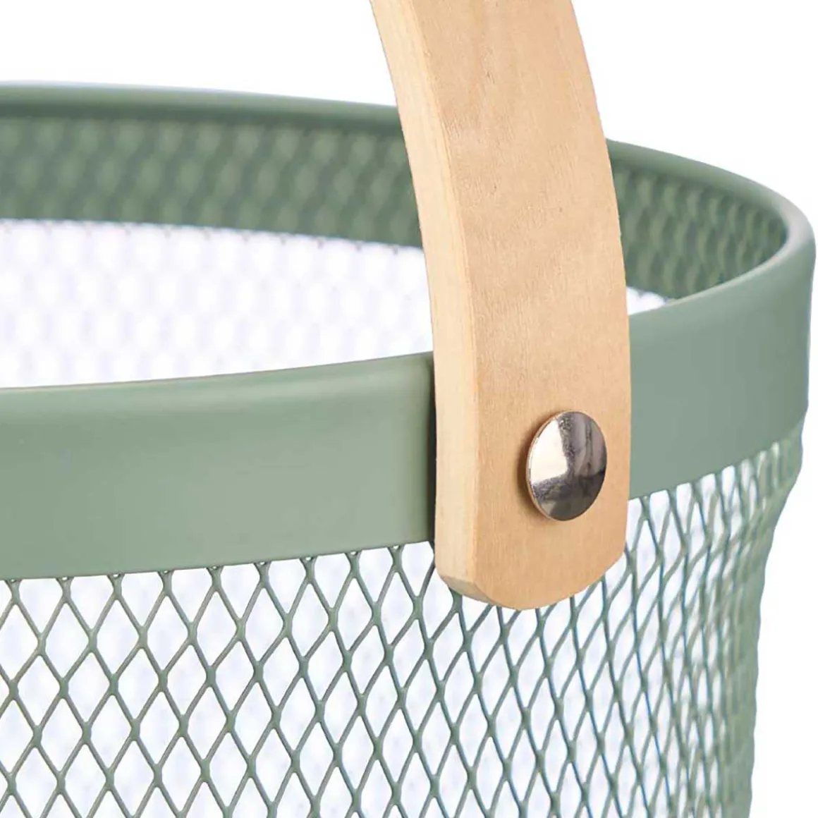 Cesta redonda de metal verde 25.5cm | ¿Sabías que tu cocina puede ser el lugar más feliz del mundo? Descubre nuestra gama de utensilios para una cocina llena de Happy Home Living. ¡Cocinar con los utensilios adecuados es mucho más fácil! | Color: verde | Medidas: 25.5×25.5x16cm | Material: metal, madera