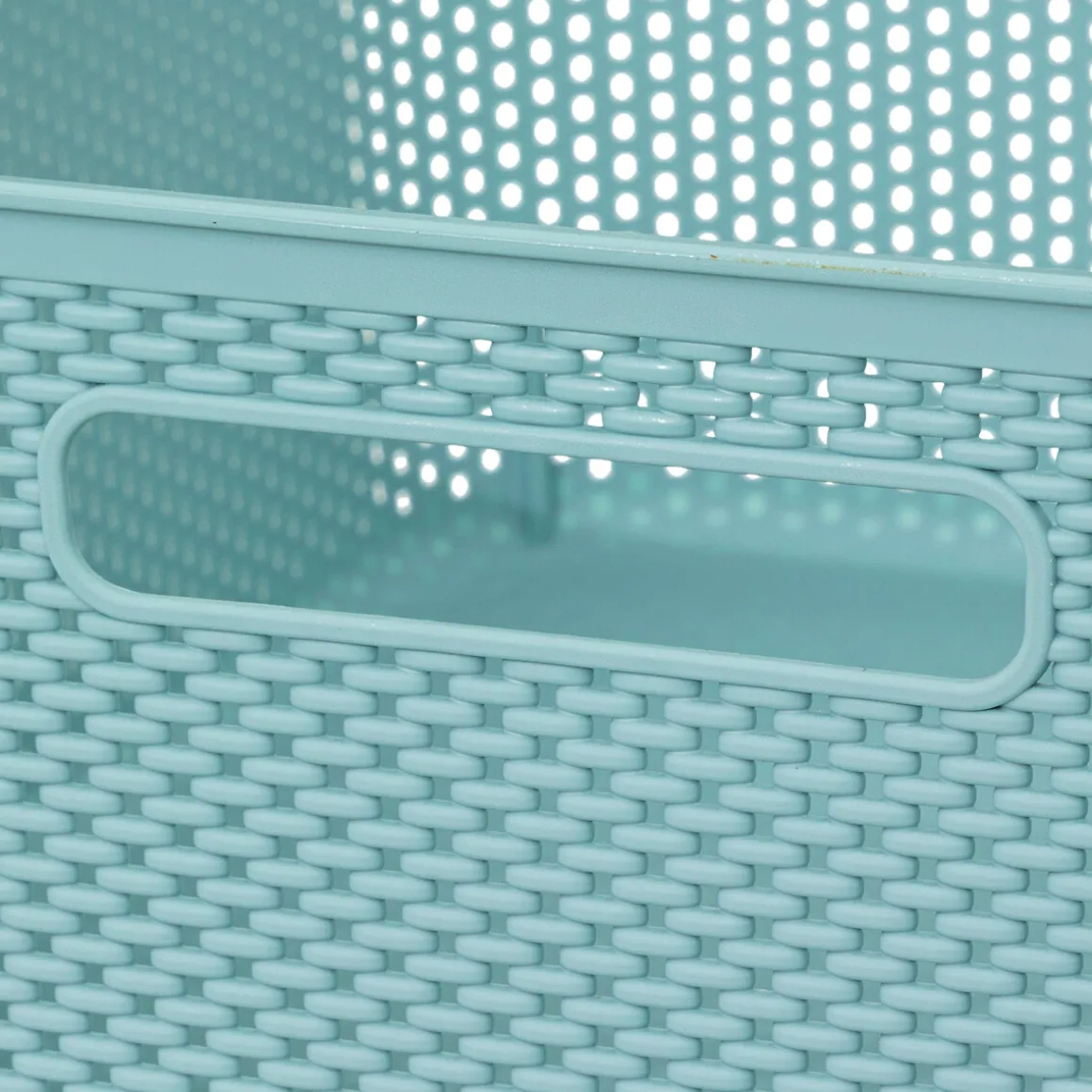 Cesto De Almacenaje De Crochet Azul 11L | 14x34x28cm | Descubre este y otros artículos de la gama de Organización hôma. Los nuevos artículos de Almacenaje para el lavadero y el trastero harán que consigas sacar el mejor provecho de tus espacios | Color: Azul | Medidas: 14x34x28cm | Material: Polipropileno | Capacidad: 11L | Marca: 5Five | Colección: Crochet