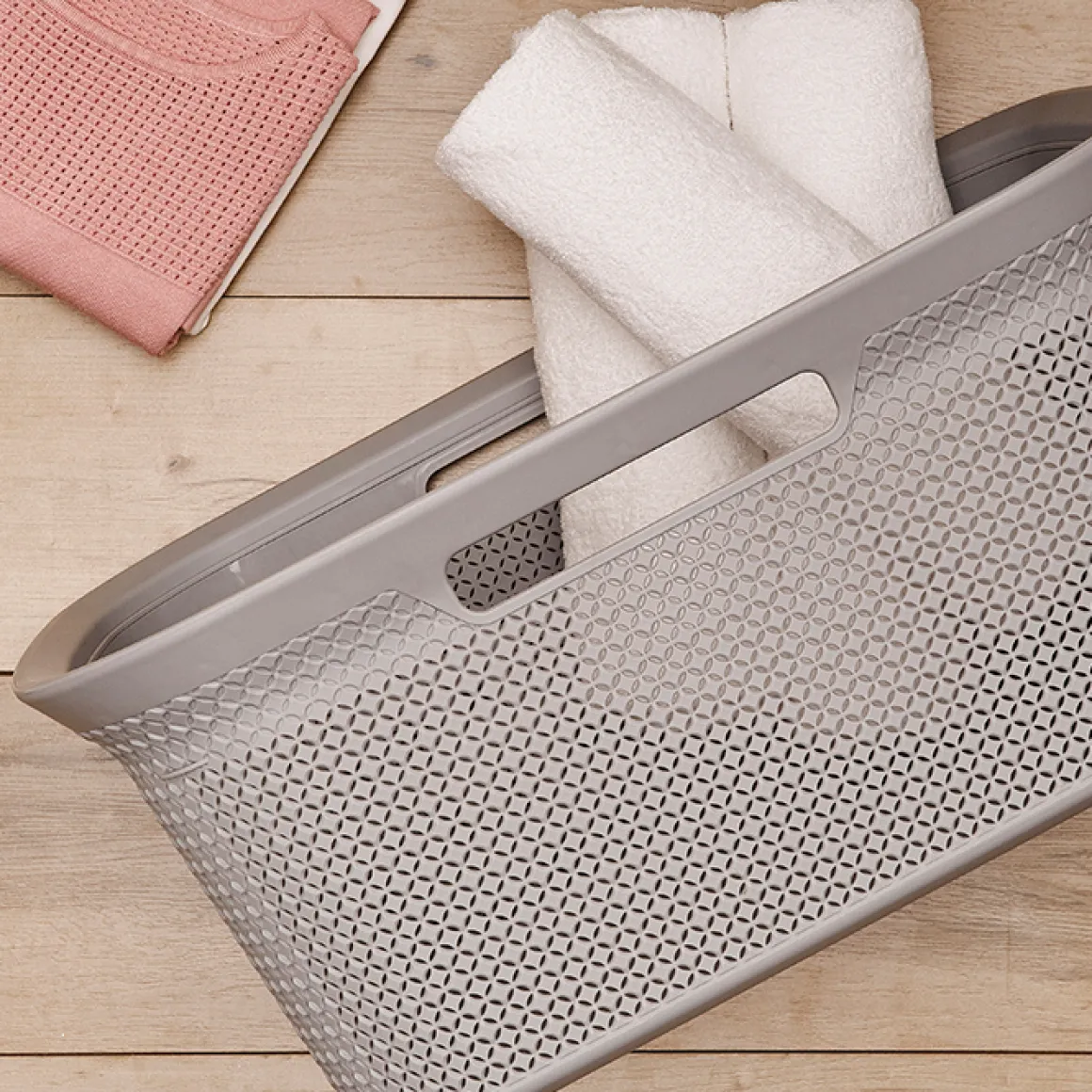 Cesto De Ropa 45L Mode | Fabricado con materiales resistentes «Bpa free» y estéticamente atractivo con efecto trenzado | Conoce este y más artículos que tenemos disponibles para tu hogar. ¡Ordenar y organizar nunca ha sido tan fácil! Descubre la gama de almacenaje hôma | Color: Gris | Medidas: 40.5×26.5×59.5cm | Material: Pvc | Capacidad: 45L