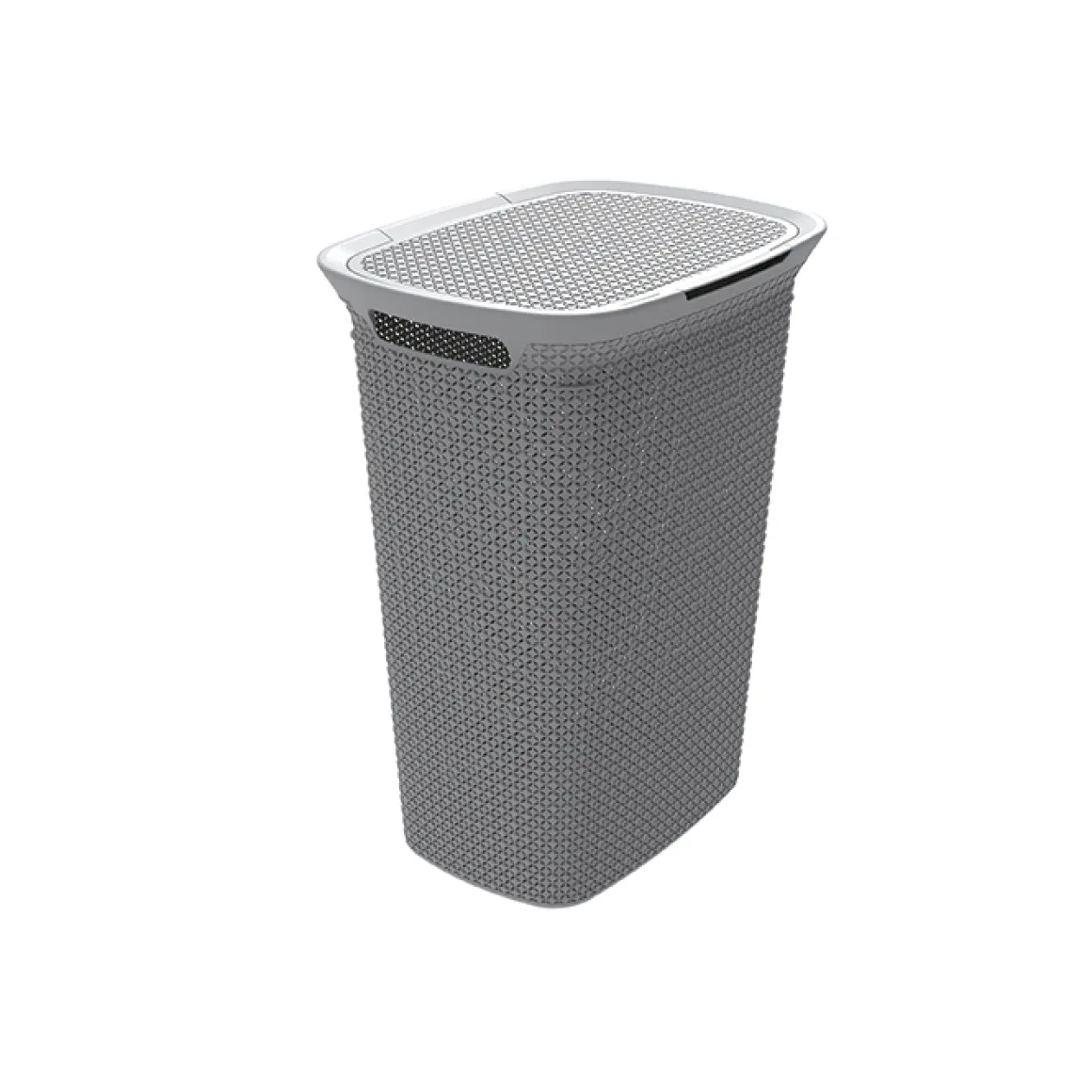 Cesto De Ropa 57L Mode | Fabricado con materiales resistentes «Bpa free» y estéticamente atractivo con efecto trenzado, es una solución para su lavandería y/o cuarto de baño | Descubre este y más artículos de la gama de almacenaje hôma. Nuestros artículos de almacenaje para la lavandería y el trastero harán que disfrutes al máximo de tus espacios | Color: Gris | Medidas: 62.5x46x35cm | Material: Pvc | Capacidad: 57L