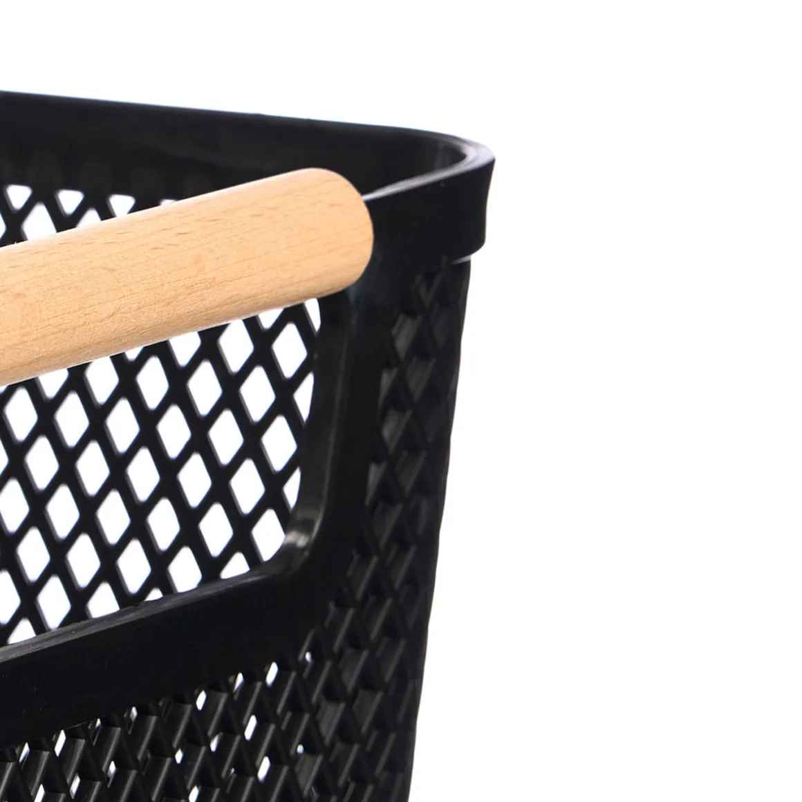 Cesto negro con asa de bambú 36x22cm | Descubre este y otros artículos de la gama de Organización hôma. Los nuevos artículos de Almacenaje para el lavadero y el trastero harán que consigas sacar el mejor provecho de tus espacios. | Color: Negro | Medidas: 16.8x22x36.2cm | Material: Polipropileno y Bambú