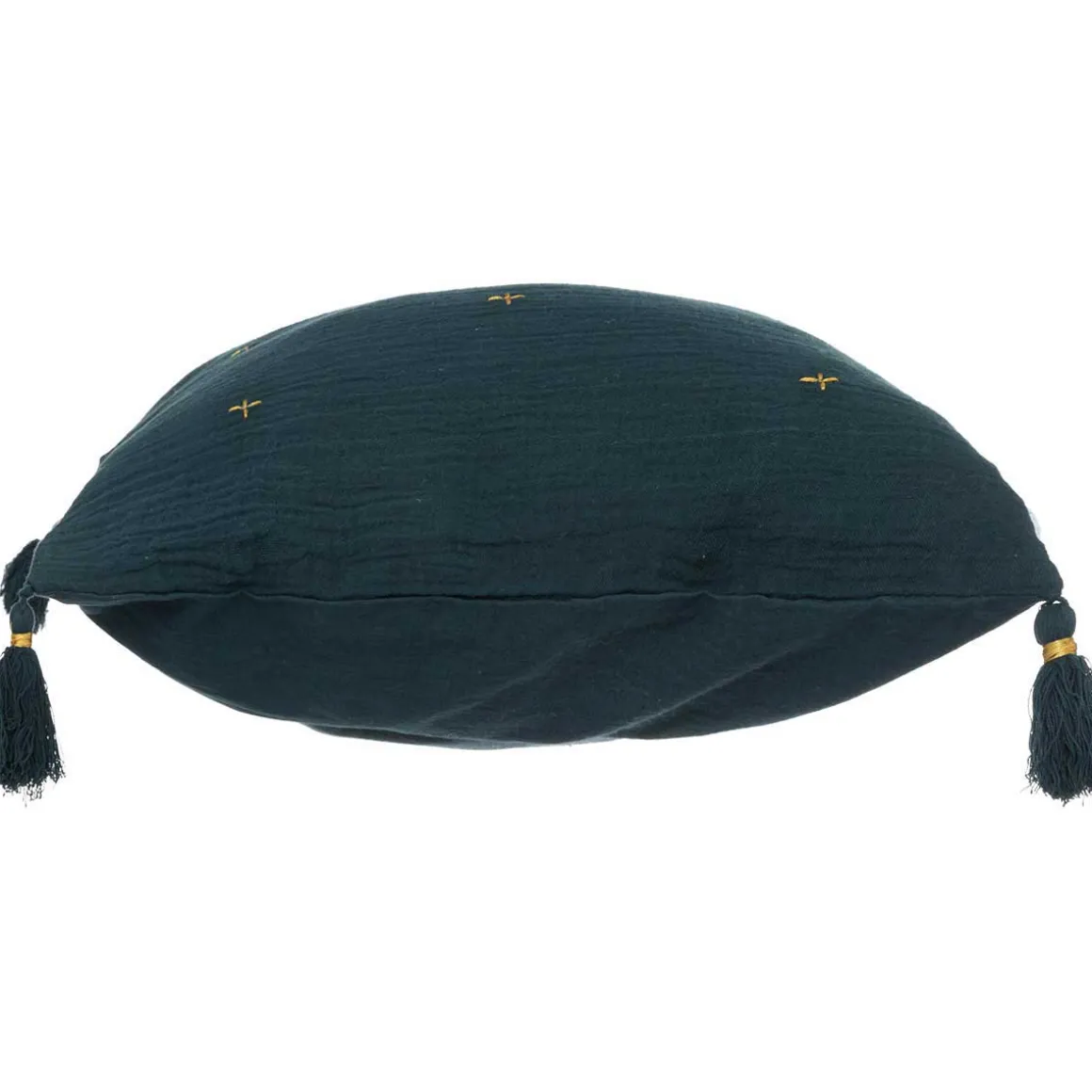 Cojín Winter Light Gaze Azul Petróleo Con Cruces Doradas 40x40cm |La colección textil hôma reúne propuestas únicas para personalizar tu casa. Desde cojines decorativos y fundas de cojín hasta las mantas más confortables, ¡ Vive en tu hogar con comodidad ! | Color: Azul petróleo, Dorado | Medidas: 40x10x40cm | Material: Algodón, Poliéster | Marca: Atmosphera