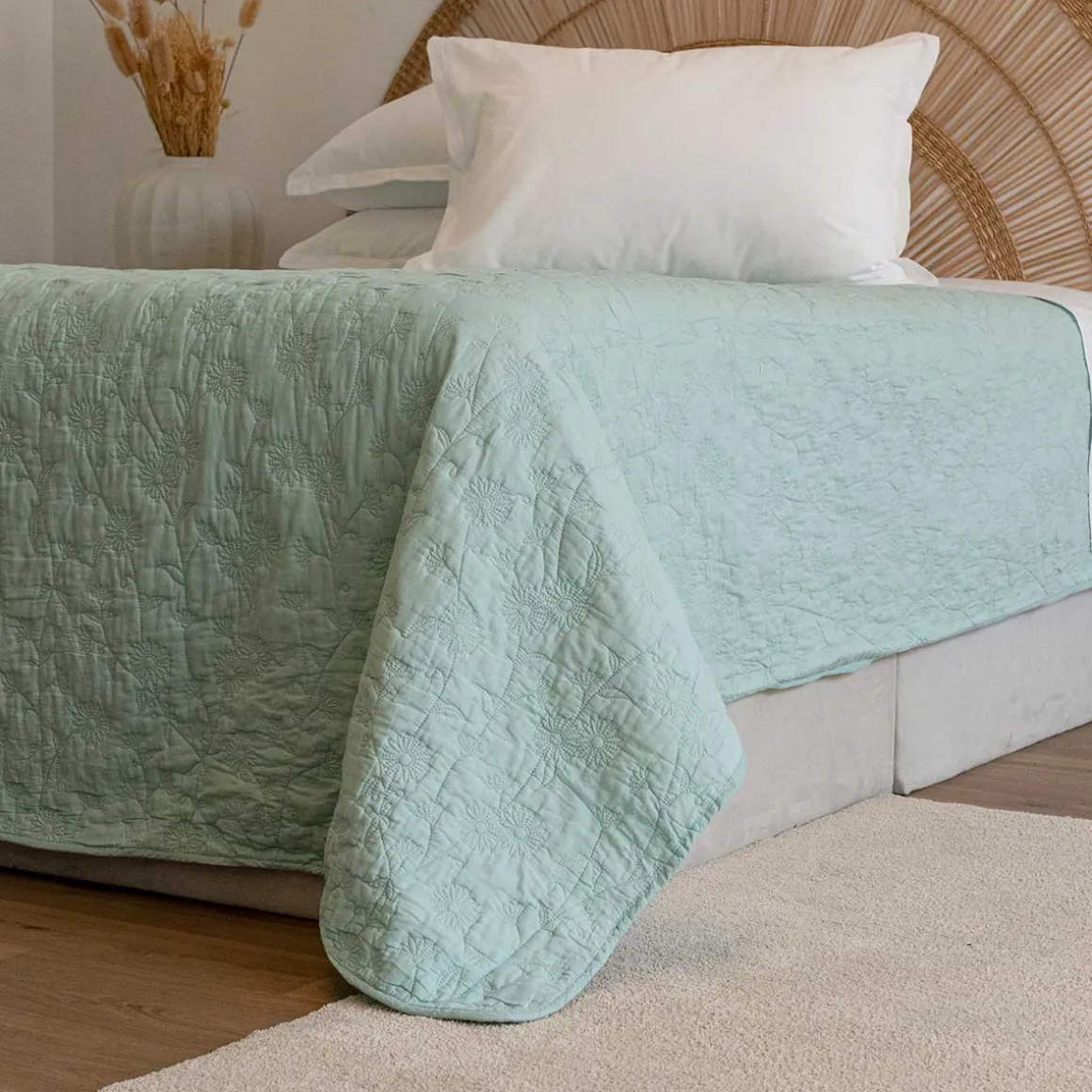 Colcha DAISY azul 220x240cm | 120 GSM | ¡Encuentre aquí todo lo necesario para un sueño reparador! Descubra nuestra colección de textiles para el hogar con propuestas de ropa de cama muy confortable: edredones, fundas, colchas, sábanas, almohadas para dormir… | Color: Azul | Medidas: 220x240cm | Material: Algodón, Poliéster