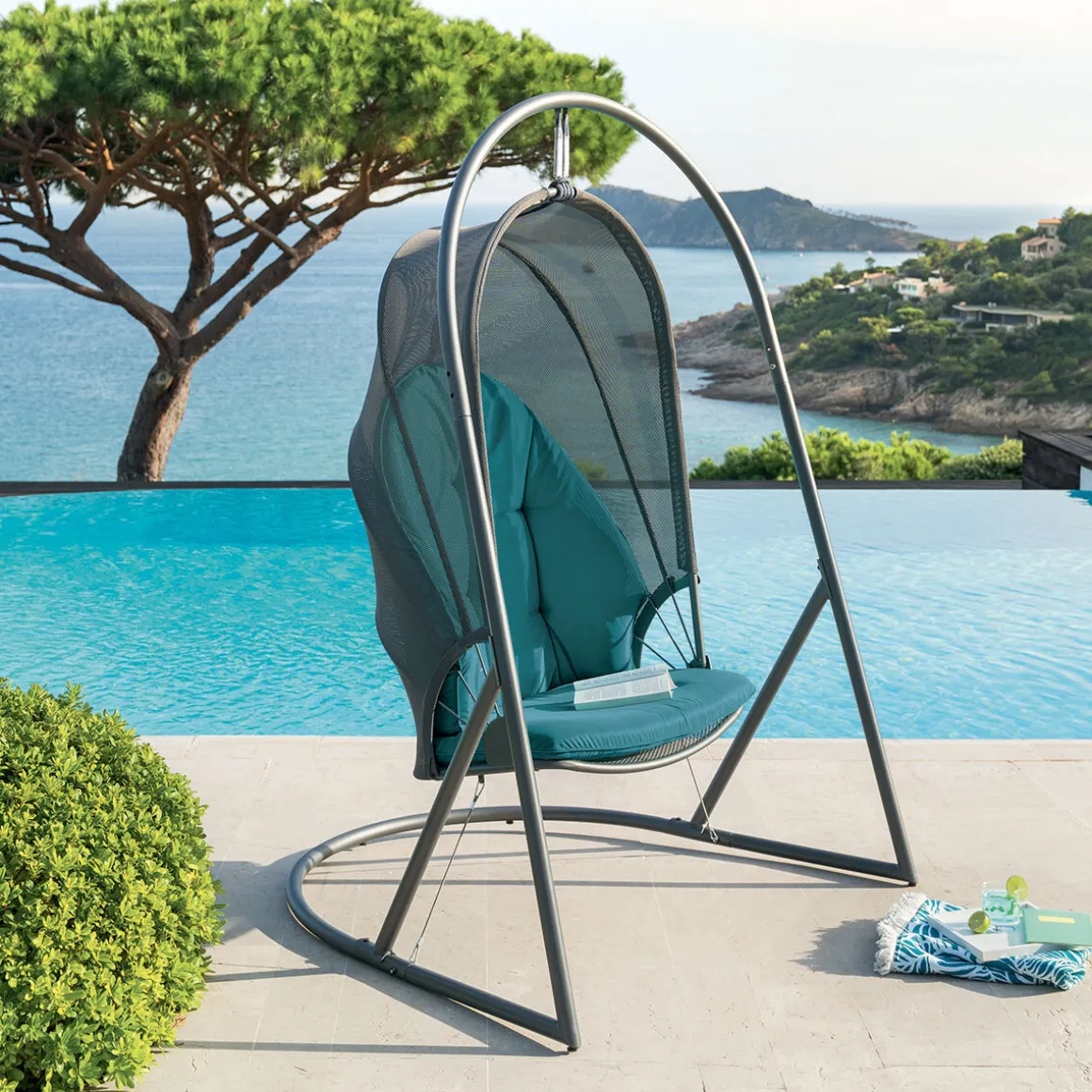 Columpio Pacha Azul Petróleo De Acero Y Poliéster | Medidas: 150x120x188CM | Ideal para descansar y relajarse | Peso máximo soportado: 110kg