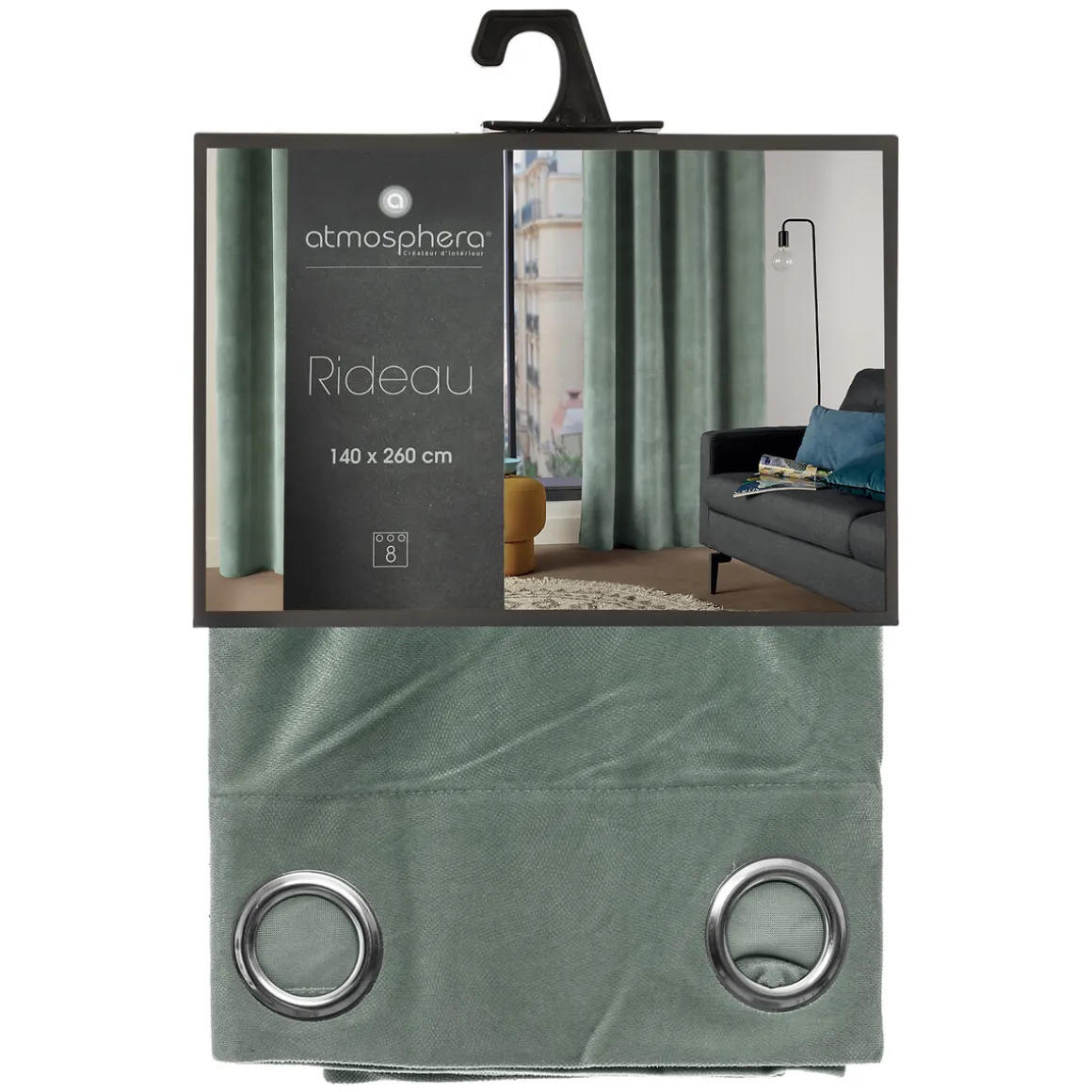 Cortina LILOU verde celadón 140x260cm | Decore y controle la intensidad de la luz con la colección de cortinas textiles hôma. Diferentes estampados y tejidos originales en cortinas de salón, dormitorio o cocina, y la barra de cortina adecuada. | Color: Verde Celadón | Medidas: 140x260cm | Material: Poliéster | Marca: Atmosphera