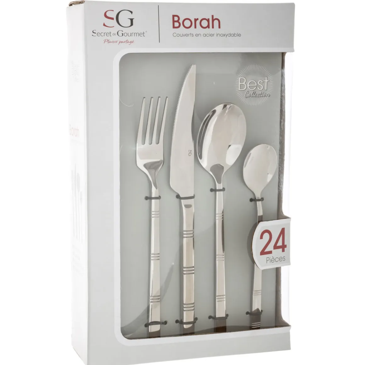 Cubertería 24 Pzas Borah Inoxidable | Todo lo que tu mesa necesita está en homa.es, echa un vistazo a nuestra colección de vajillas, vasos, cubiertos, posavasos, soportes, piezas para servir, etc. ¡Sirve con Happy Home Living, y todo sabrá mucho mejor! | Medidas: 28x7x17cm | Material: Acero Inoxidable | Color: Plateado | Ref.412107