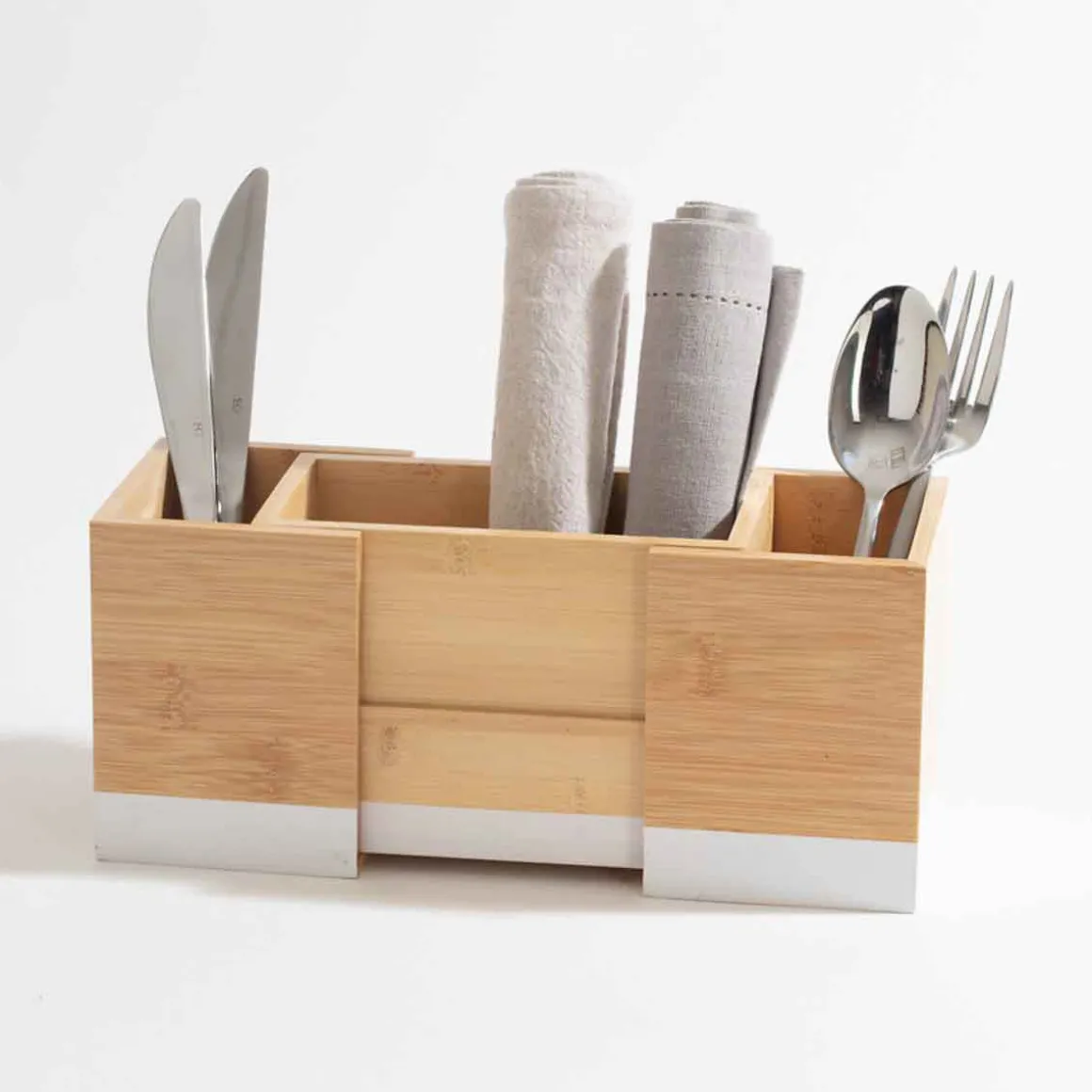 Cubertero extensible de bambú | 12x10x18cm | ¿Sabía que su cocina puede ser el lugar más feliz del mundo? Descubra nuestra gama de utensilios para una cocina llena de Happy Home Living. Cocinar con los utensilios adecuados es mucho más fácil. | Color: Beige, Blanco | Medidas: 12x10x18cm | Material: Bambú | Marca: 5Five
