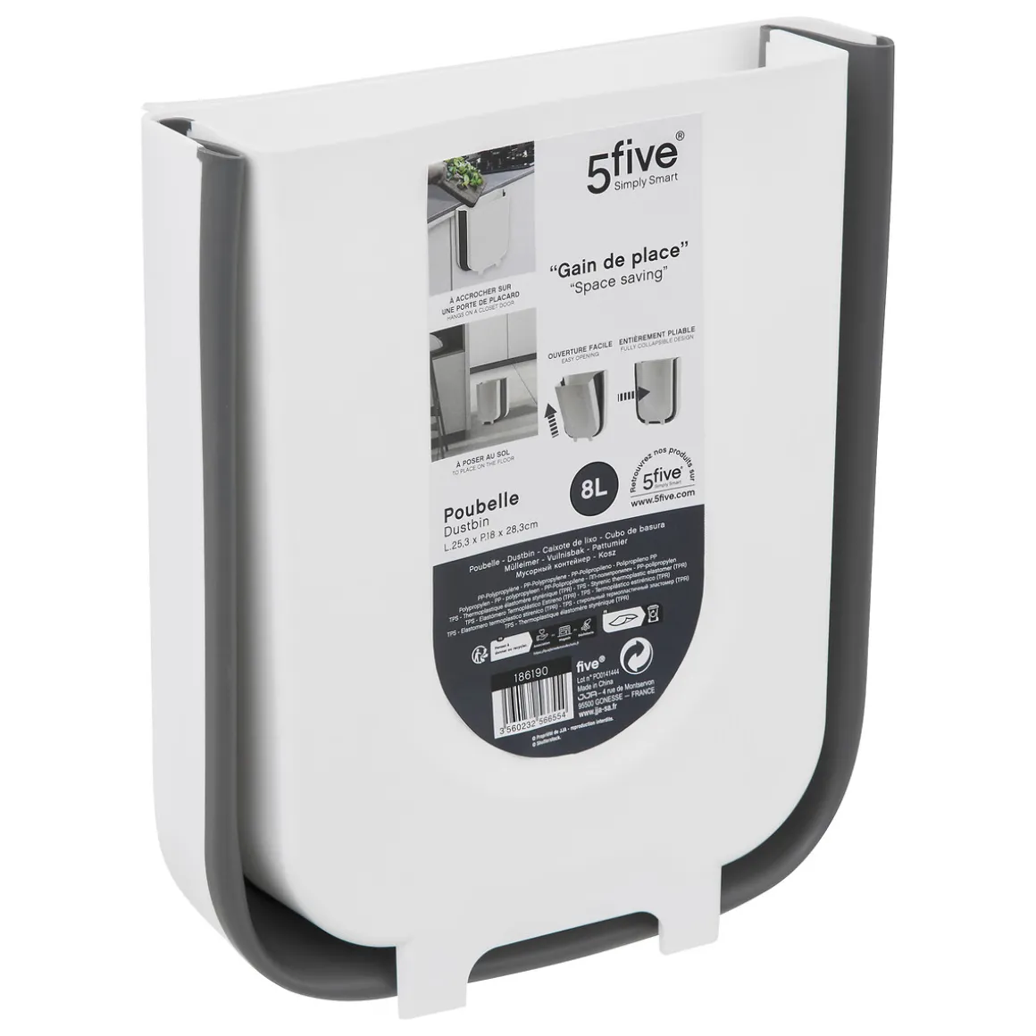 Cubo De Basura Extendible 8L | 25.3x18x28.3cm | La funcionalidad en la cocina es esencial y comienza con las soluciones de almacenamiento para la cocina. Desde el carrito multiusos, al botellero o los cubos de basura y reciclaje, encuéntralo todo en homa.es | Color: Blanco, Gris | Medidas: 25.3x18x28.3cm | Material: Polipropileno | Capacidad: 8L | Marca: 5Five