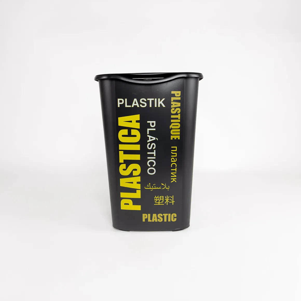 Cubo reciclaje para plástico y metal amarillo 50L | La funcionalidad de la cocina es esencial y comienza por las soluciones de organización en la cocina. Desde el carrito auxiliar , la botellera, los cubos de basura, hasta cubos de reciclaje, encuentra todo en homastores.com | Color: Negro y Amarillo | Medidas: 53.3x36x37.5cm | Material: Polipropileno