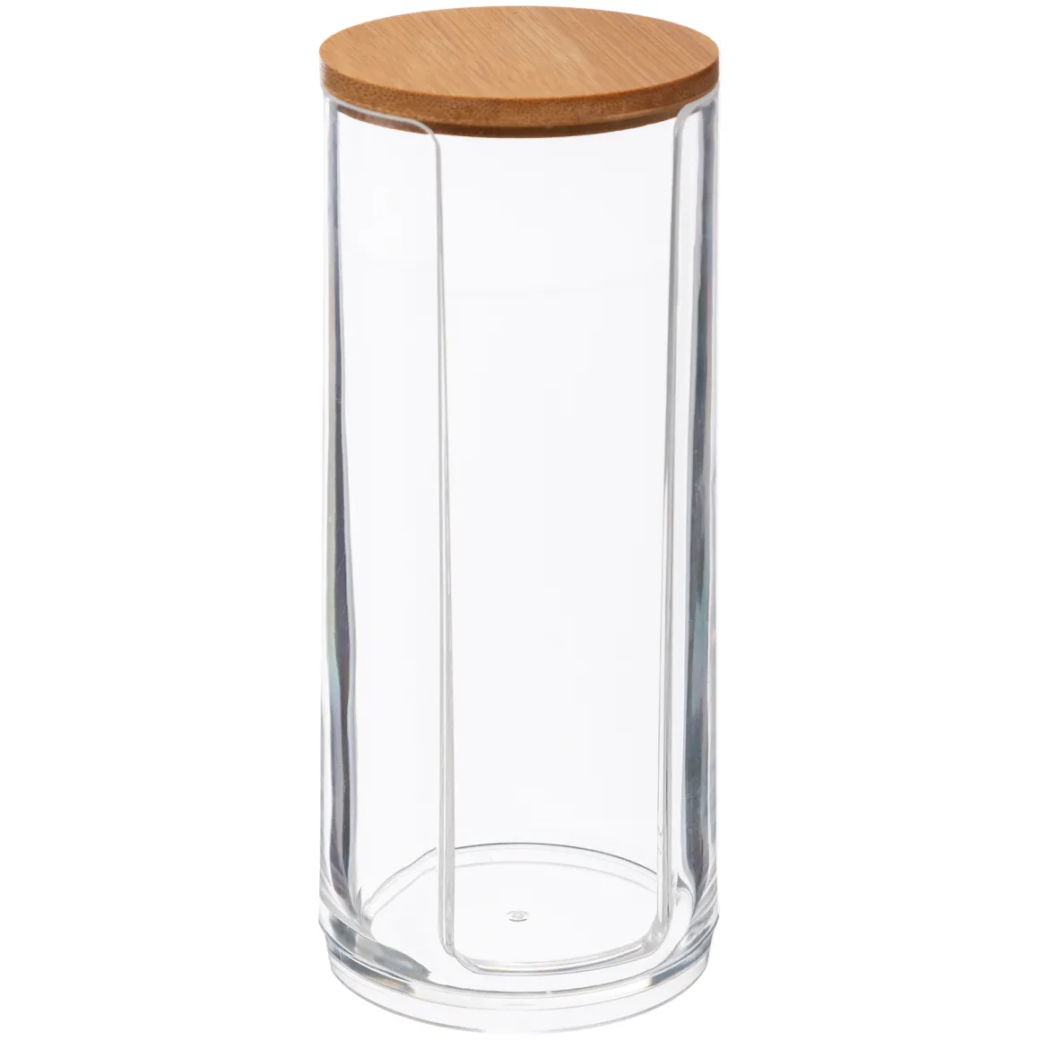 Dispensador algodón acrílico c/tapa bambú Selena | Medidas: 17,6×7,5×7,5cm