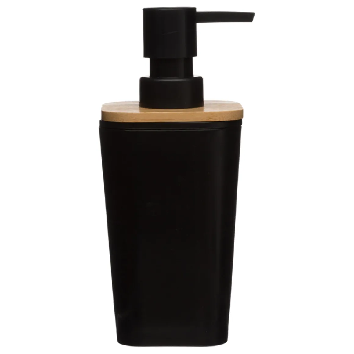 Dispensador De Jabón Líquido Tapa De Bambú | Los resistentes materiales de su composición lo convierten en una pieza indispensable para tu cuarto de baño | Medidas: 7.6×7.3×17.5cm | Material: Poliestireno, Bambú | Color: Negro