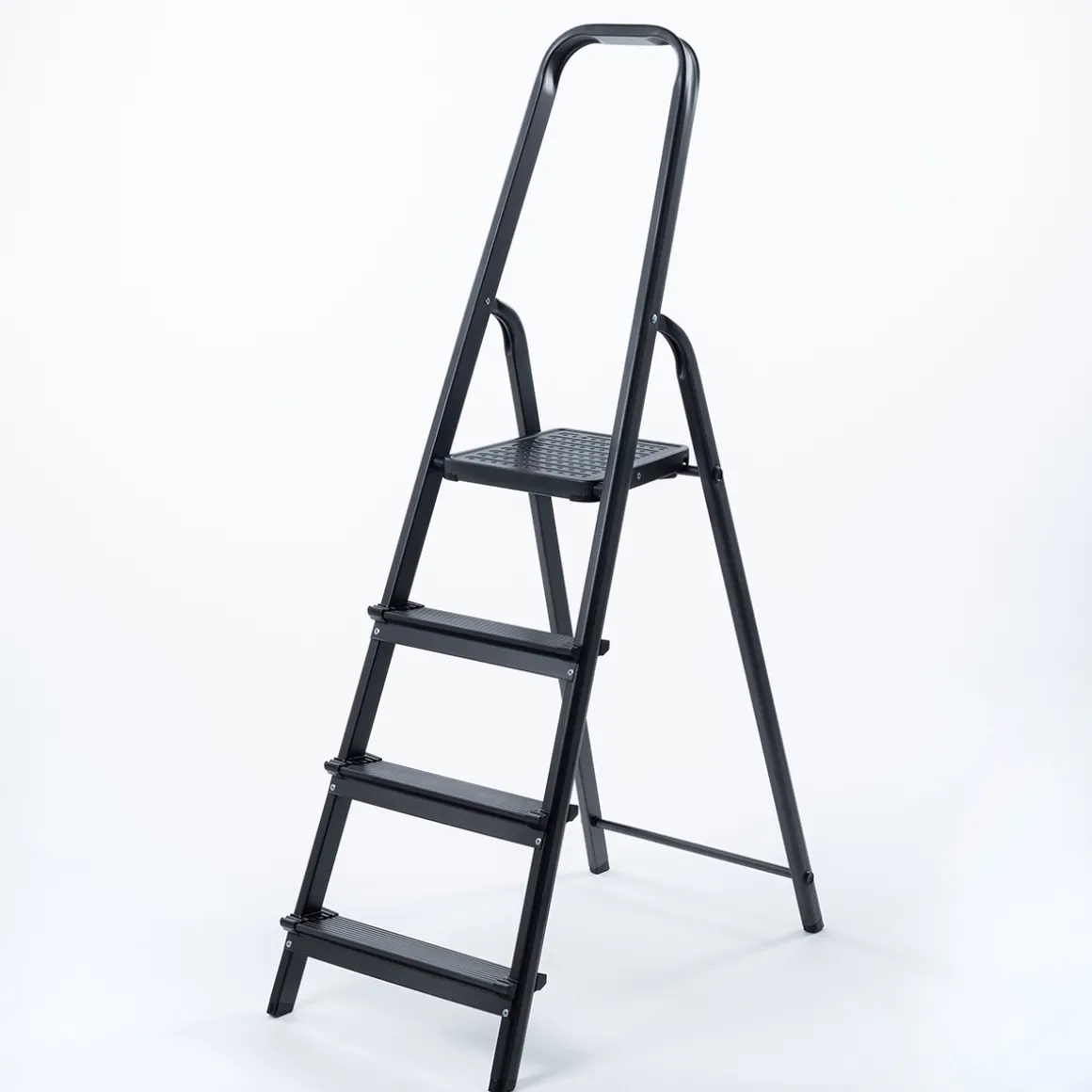 Escalera Negra Con 4 Gradas | 154x44x12cm | Descubre este y otros artículos de la gama de Organización hôma. Los nuevos artículos de Almacenaje para el lavadero y el trastero harán que consigas sacar el mejor provecho de tus espacios | Color: Negro | Medidas: 154x44x12cm | Material: Aluminio