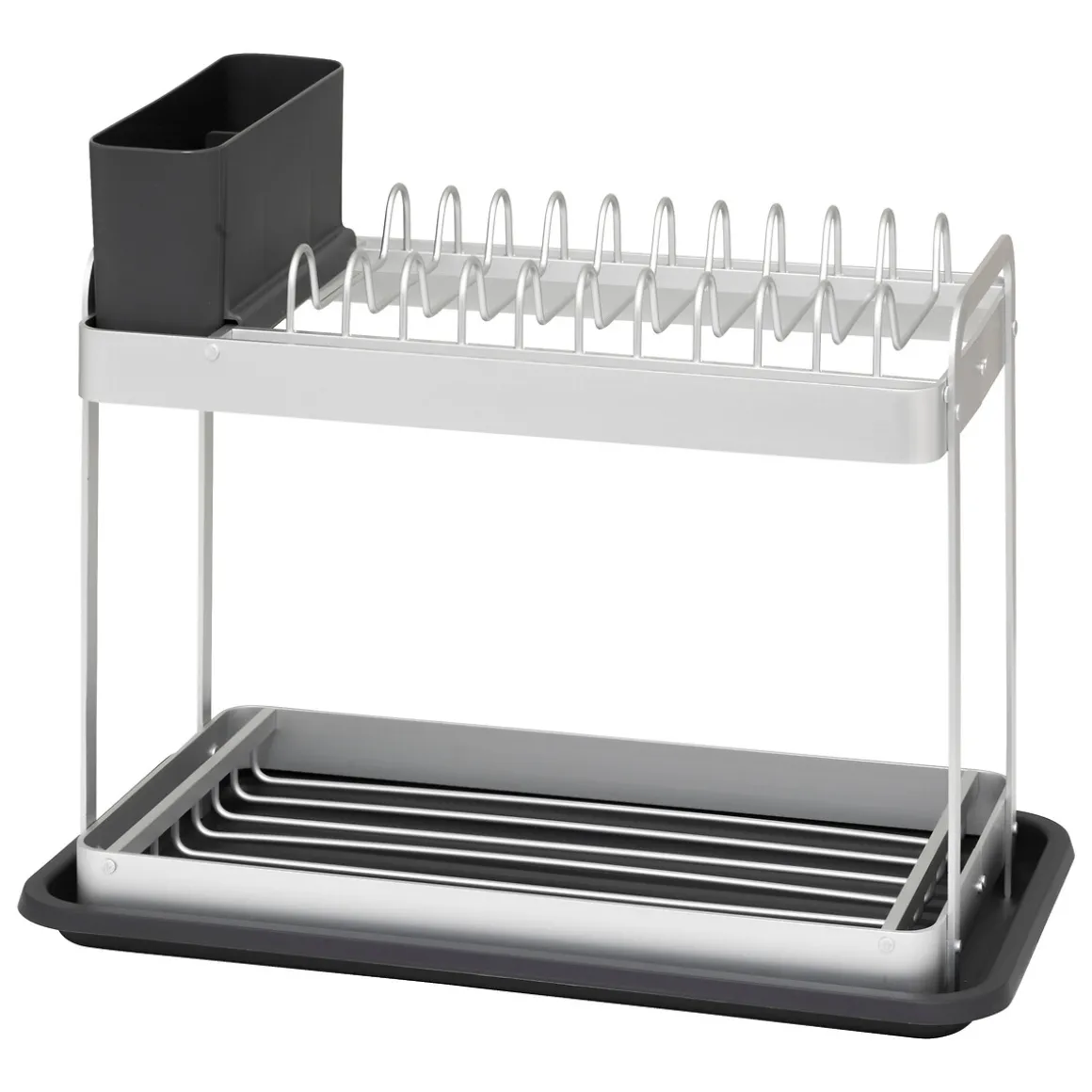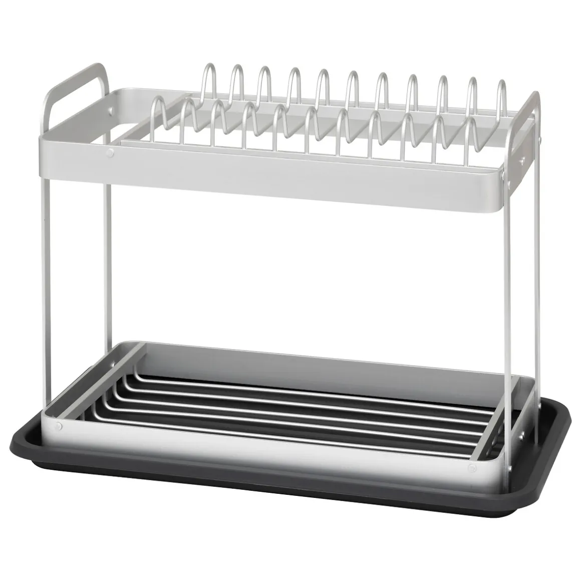 Escurreplatos con 2 niveles gris de aluminio | 35×23.2x42cm | La funcionalidad de la cocina es esencial y comienza por las soluciones de organización en la cocina. Desde el carrito auxiliar , la botellera, los cubos de basura, hasta cubos de reciclaje, encuentra todo en homastores.com | Color: Gris | Medidas: 35×23,2x42cm | Material: Aluminio | Marca: 5Five
