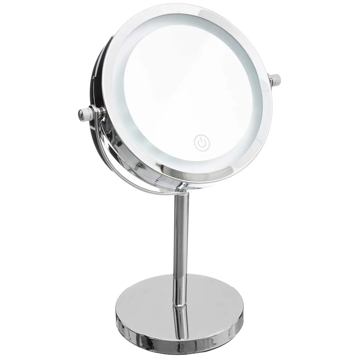 Espejo De Baño Redondo Con Soporte Metálico | 2 lados: 1 lado clásico -1 lado zoom x3 180° giratorio | Los accesorios y la organización del baño son esenciales para que tus rutinas más personales te traigan todo el bienestar que te mereces. ¡Conoce nuestra colección de accesorios para el baño! | Funciona con pilas, 4 x LR03 / AAA – 1.5 V no incluidas