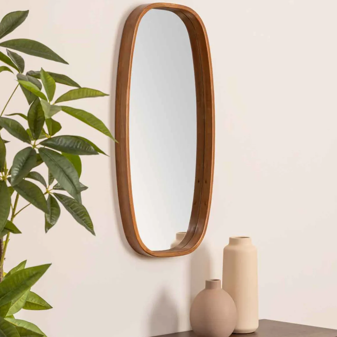 Espejo de pared castaño JASNA | Descubre en Hôma este y otros espejos para decorar tu hogar. | Color: Castaño, transparente. | Medidas: 40 x 5 x 80 cm. | Material: MDF, vidrio. | Marca: Atmosphera.