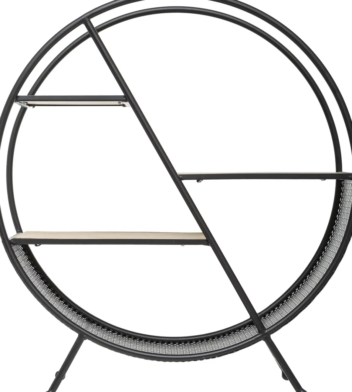 Estante Redondo Timeo C/3 Baldas | 50x18x55.8cm | Con estructura metálica y baldas de madera | Conoce los muebles auxiliares que tenemos para ti. El mobiliario hôma fue pensado para Home Happy Living. Los mejores artículos de decoración están aquí | Color: Negro, Marrón claro | Medidas: 50x18x55.8cm | Material: Hierro, MDF | Marca: Atmosphera