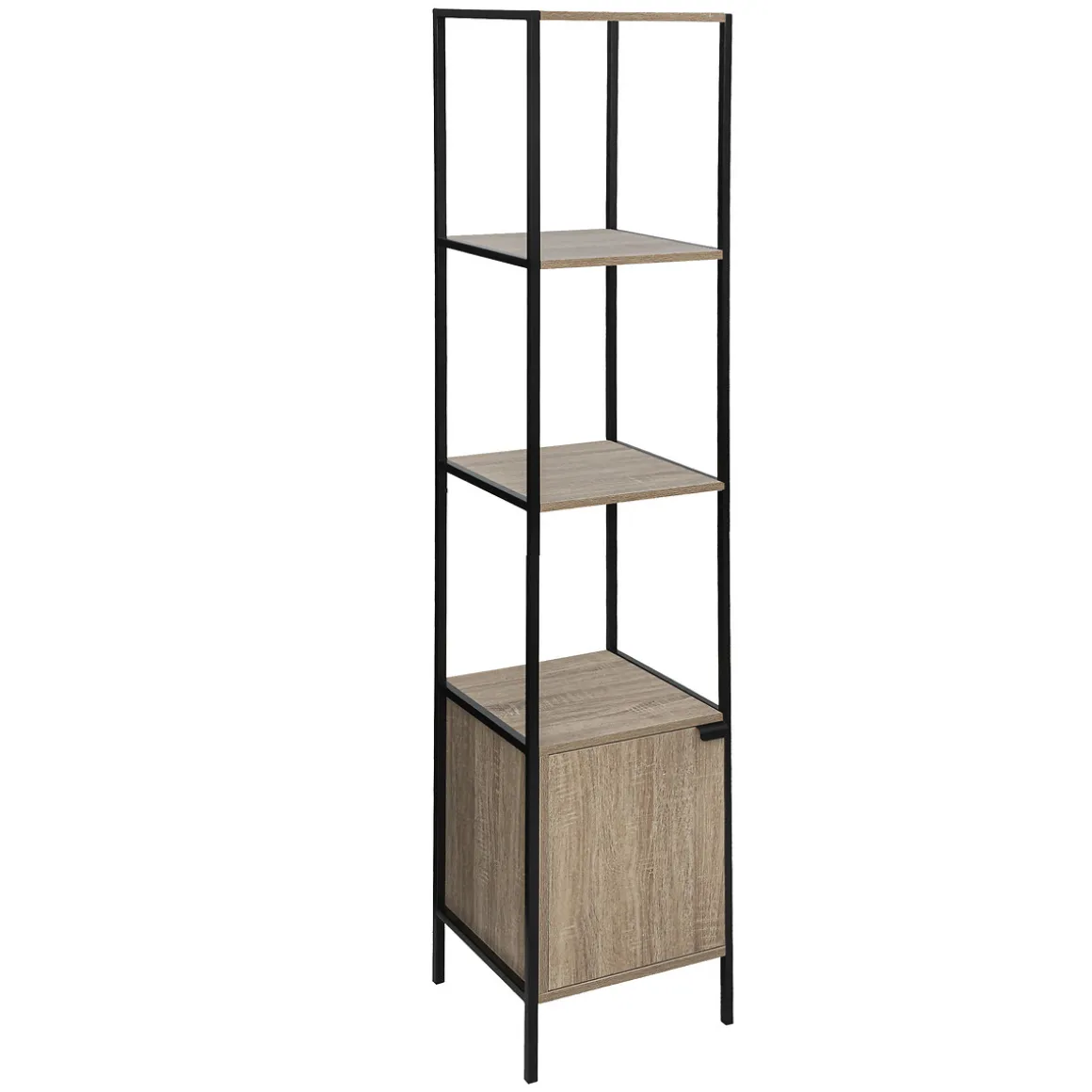 Estantería Con Baldas Y Puerta | Peso soportado por estante 5kg | Conoce este y más artículos que tenemos disponibles para tu vestidor. ¡Ordenar y organizar tus armarios y vestidores nunca ha sido tan fácil! Descubre la gama de almacenaje hôma | Color: Marrón, Negro | Medidas: 176x35x35cm | Material: Aglomerado, Hierro