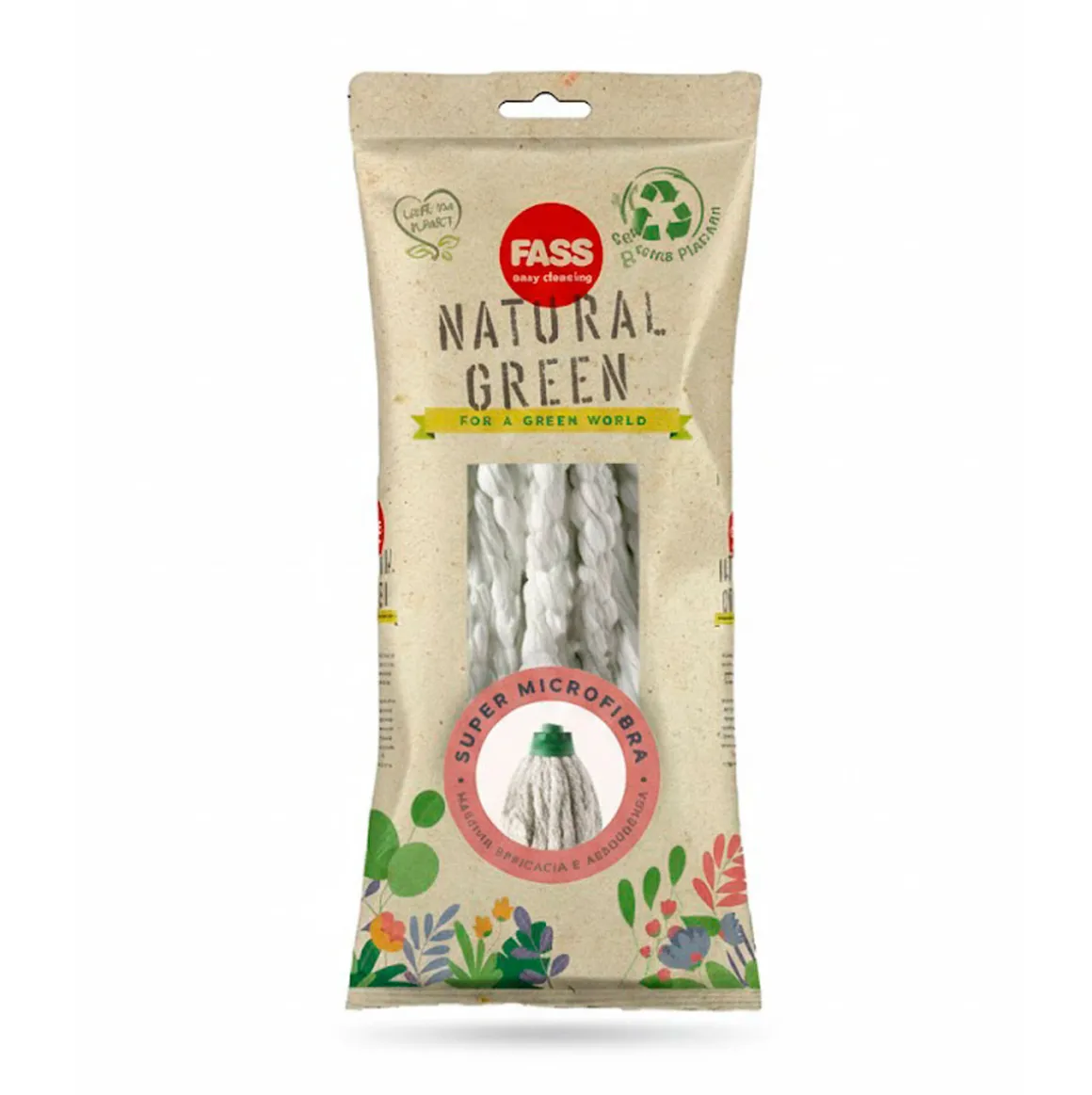 Fregona De Microfibra Verde Natural | Medidas: 7x10x30cm | Material: Algodón y Plástico | Color: Blanco y Verde | Ref.441828