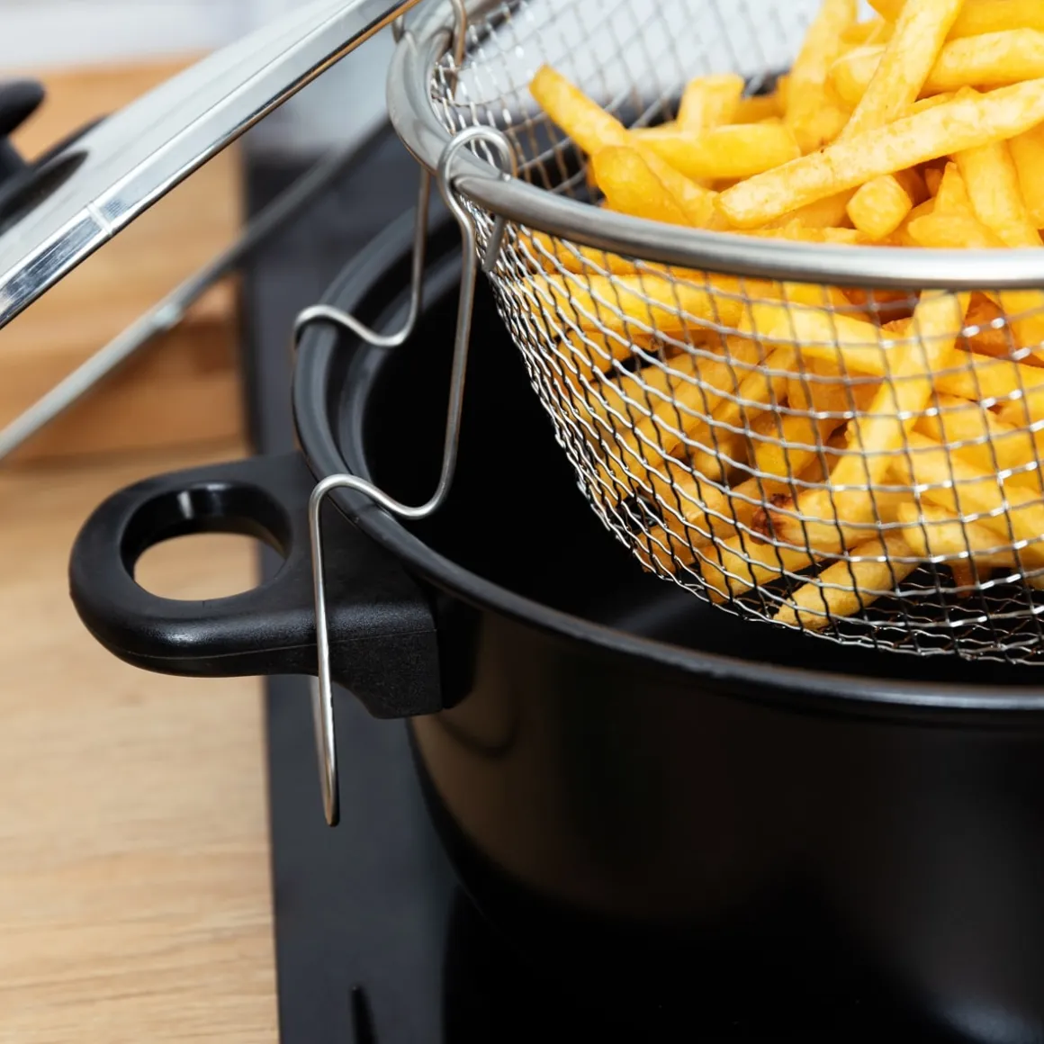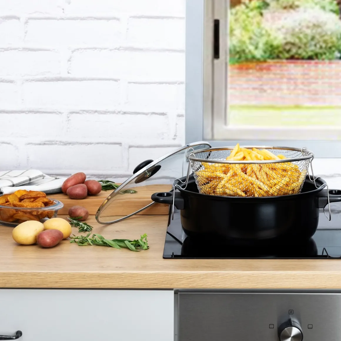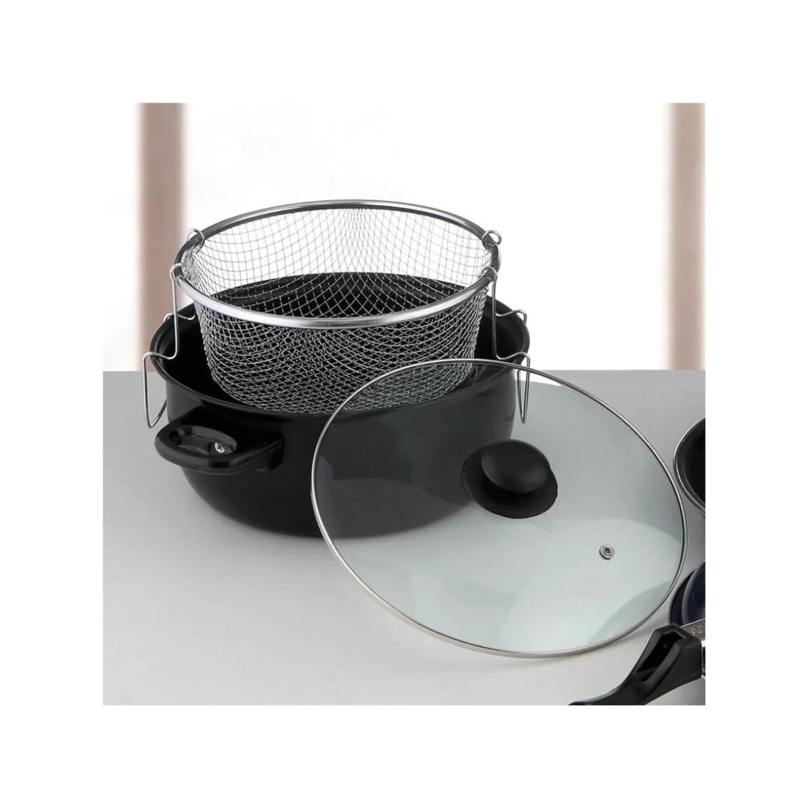 Freidora Con Tapa | 35x26x10cm | Revestimiento interior antiadherente | Apta para placas de gas, eléctricas y vitrocerámica | Apta para lavavajillas | Descubre todo para tu cocina y horno en homa.es . Ollas, sartenes y cacerolas para cualquier tipo de cocina | Color: Negro | Medidas: 26x10x35cm | Material: Vidrio, Acero