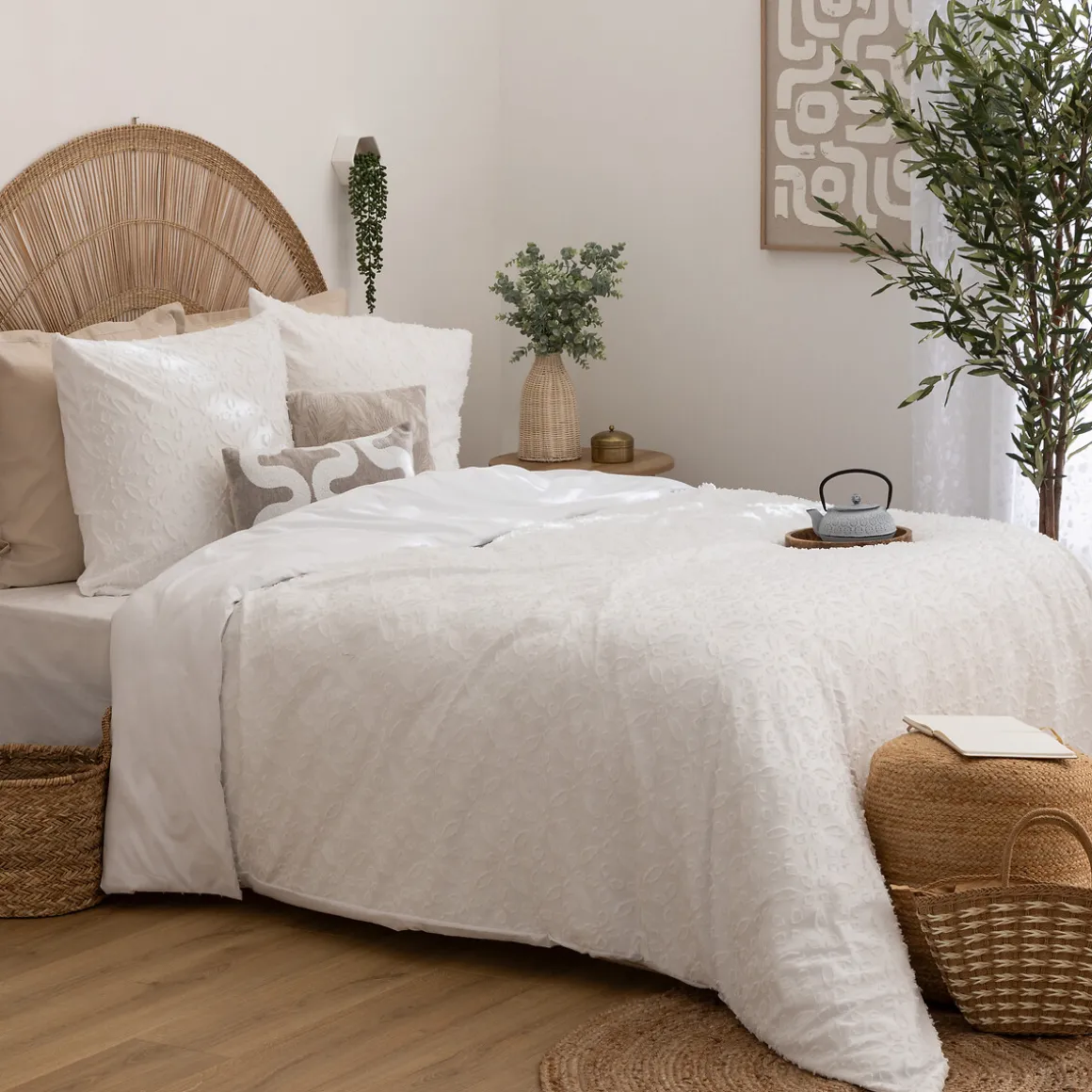 Funda nórdica y 2 fundas de cojín SWAN blanco 220x240cm | Fundas de cojín: 65x65cm | ¡Encuentre aquí todo lo necesario para un sueño reparador! Descubra nuestra colección de textiles para el hogar con propuestas de ropa de cama muy confortables: edredones, fundas, colchas, sábanas, almohadas para dormir… | Color: Blanco | Medidas: 240x220cm| Material: Poliéster | Marca: Atmosphera