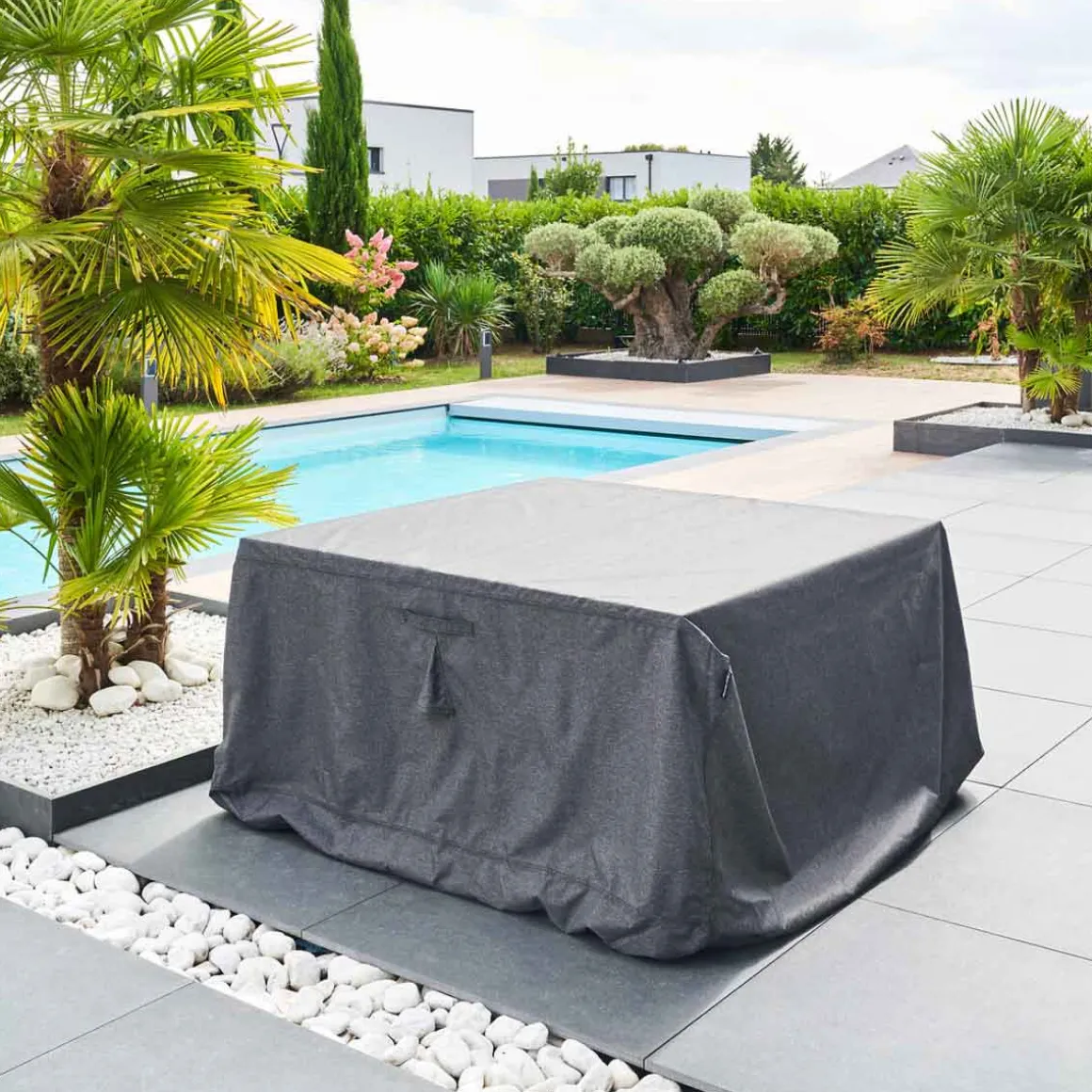 Funda para mesa cuadrada M | 80x165x165cm Poliéster | ¡Proteja su mesa de jardín con esta funda protectora! Esta funda protectora de poliéster recubierta de poliuretano la protegerá de las inclemencias del tiempo. Su color combinará fácilmente con su jardín. | Color: Gris oscuro | Medidas: 80x165x165cm | Material: Poliéster | Marca: Hespéride