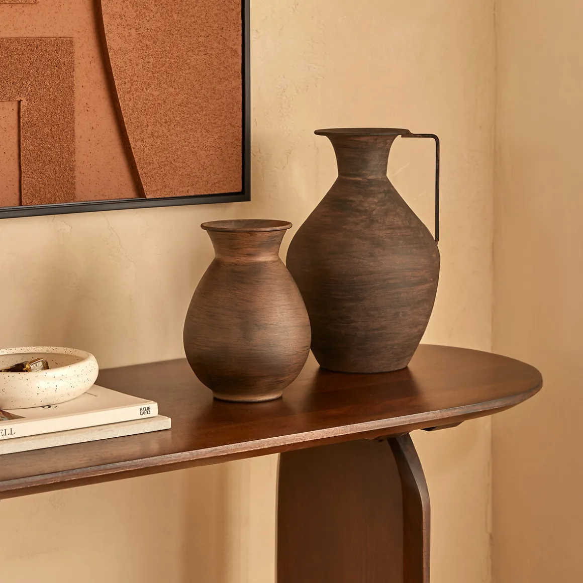 Jarrón WONJA marrón de metal 20x15cm | Encuentra este y otros jarrones para decorar tu hogar. Los mejores artículos de decoración están en hôma | Color: Marrón | Medidas: 20x15x15cm | Material: Metal | Marca: Atmosphera