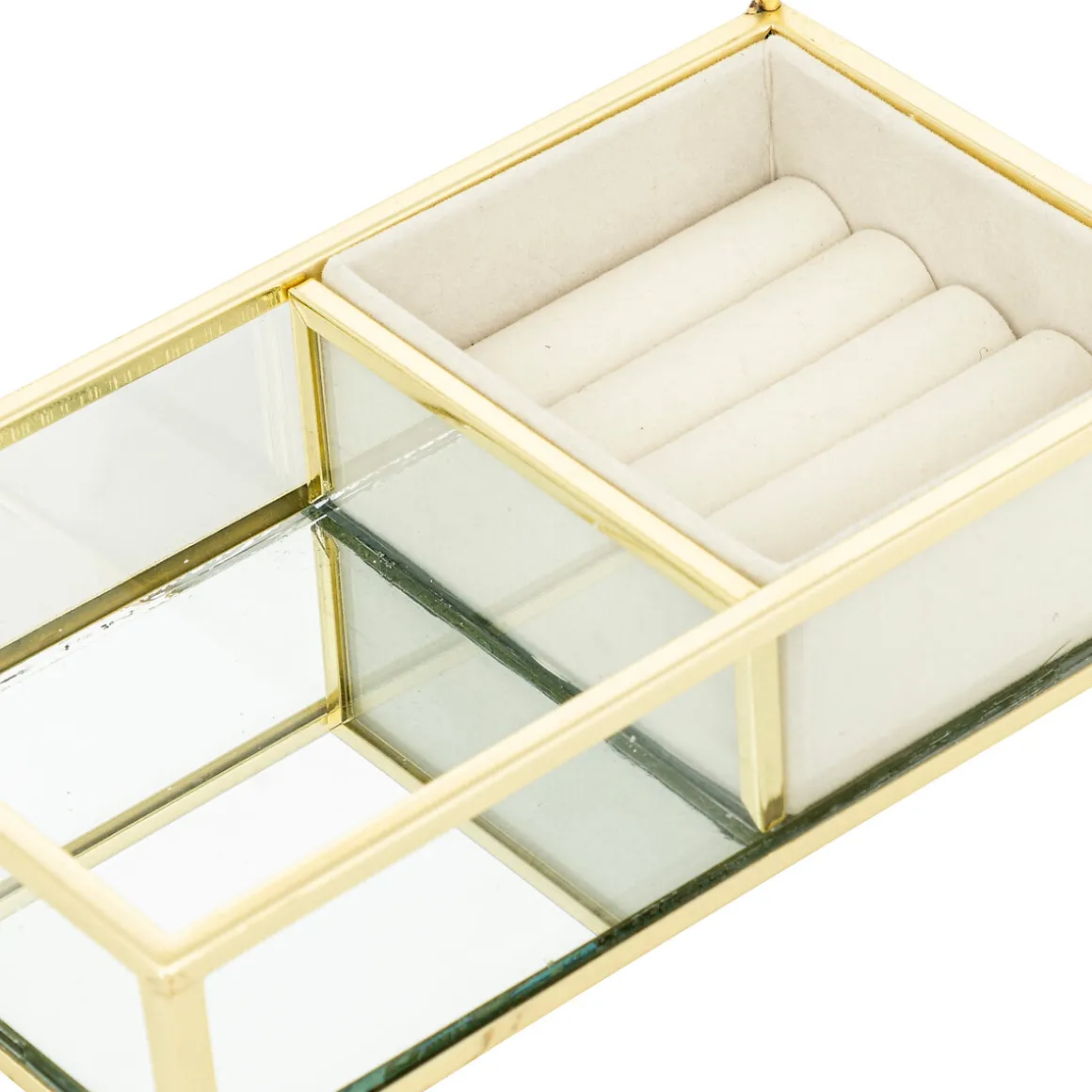 Joyero de metal ISRA | En hôma encontrarás los mejores complementos de decoración para tu hogar. Descubre cuál te gusta más | Color: Dorado | Medidas: 29.5x18x10cm | Material: Metal, Vidrio | Marca: Armosphera