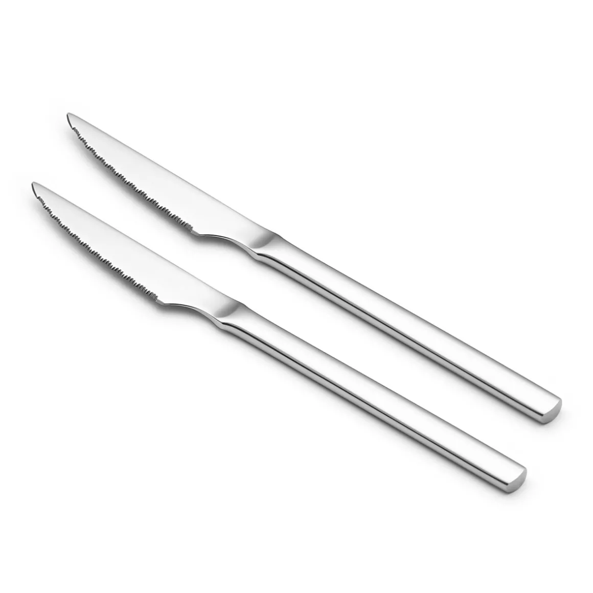 Juego 2 Cuchillos Chuleteros Línea | Todo lo que tu mesa necesita está en homa.es, echa un vistazo a nuestra colección de vajillas, vasos, cubiertos, posavasos, soportes, etc. ¡Sirve con Happy Home Living, y todo sabrá mucho mejor! | Color: Plateado | Medidas: 23cm | Material: Acero Inoxidable