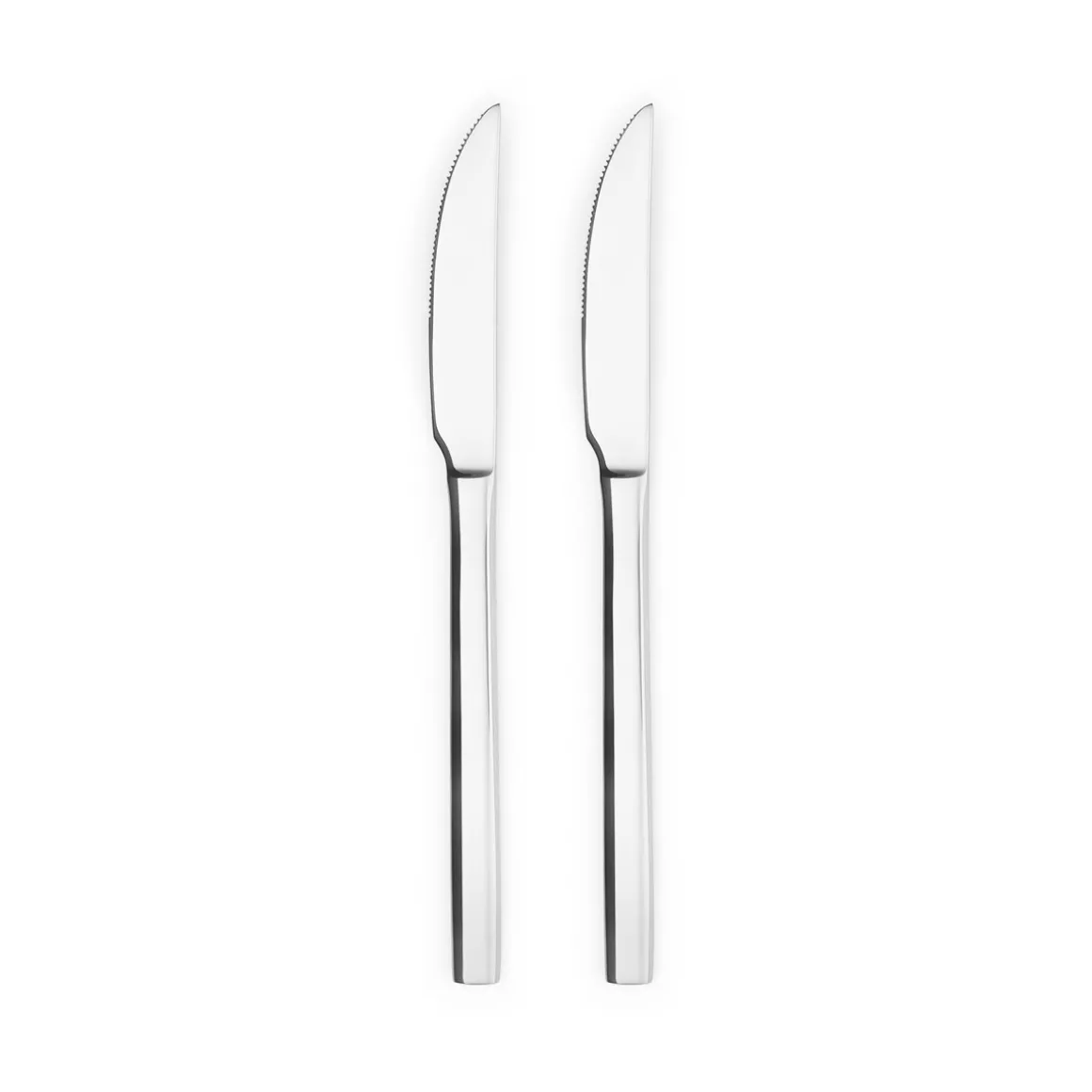 Juego 2 Cuchillos De Postre Línea | Todo lo que tu mesa necesita está en homa.es, echa un vistazo a nuestra colección de vajillas, vasos, cubiertos, posavasos, soportes, etc. ¡Sirve con Happy Home Living, y todo sabrá mucho mejor! | Color: Plateado | Medidas: 19cm | Material: Acero Inoxidable
