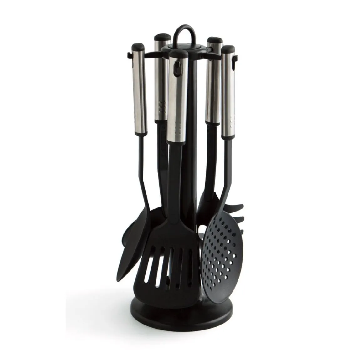 Juego 5 Cubiertos Inoxidables/Nailon | ¿Sabías que tu cocina puede ser el lugar más feliz del mundo? Echa un vistazo a nuestra gama de utensilios para una cocina llena de Happy Home Living. ¡Cocinar con los utensilios adecuados es mucho más fácil! | Medidas: 43x15x15cm | Material: Acero inoxidable, Nailon