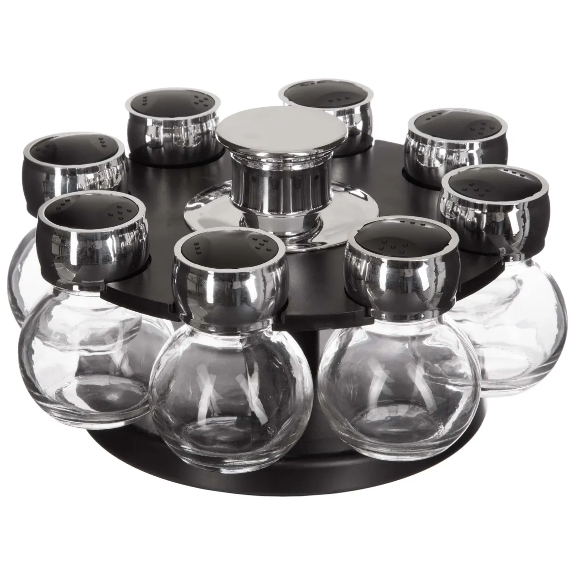 Juego 8 Tarros De Especias Con Soporte | Cada Tarro 80ml | ¿Sabías que tu cocina puede ser el lugar más feliz del mundo? Echa un vistazo a nuestra gama de utensilios para una cocina llena de Happy Home Living. ¡Cocinar con los utensilios adecuados es mucho más fácil! | Color: Transparente, Plateado, Negro | Medidas: 12.5x22x22cm | Material: Abs, Vidrio | Capacidad: 80ml | Marca: 5Five