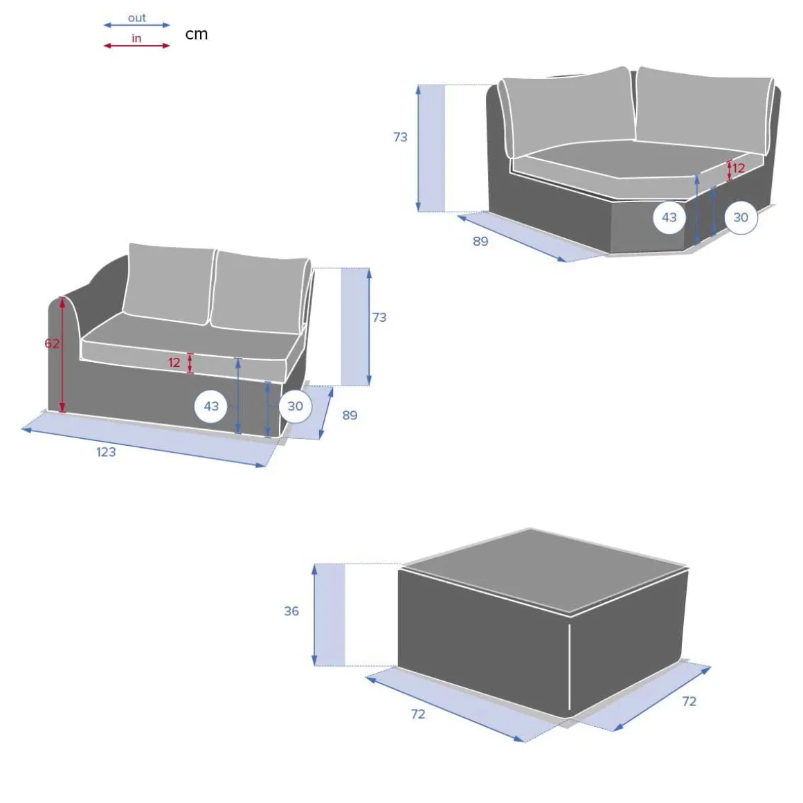 Juego de jardín MOORÉA savana de ratán sintético | Medidas: sofá brazo derecho: 73x89x123cm, sofá brazo izquierdo: 73x89x123cm, sofá angular: 73x113x113cm, Mesa: 36x72x72cm | Estructura con tratamiento epoxi antioxidante | Se puede quitar la funda de los cojines para facilitar la limpieza | Tejido con tratamiento hidrófugo que permite que el agua resbale sin penetrar en el material | Color: Gris | Material: Ratán sintético, Aluminio | Colección: Mooréa | Marca: Hespéride