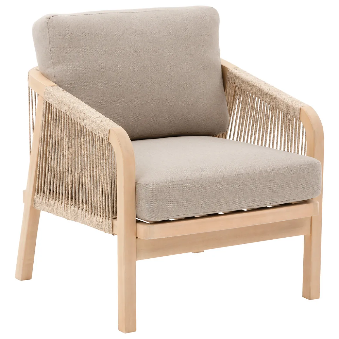 Juego de jardín PAPOUASIE gris de madera acacia | 5 Plazas | Sofá 3 plazas: 68.5×79.5x203cm; 2 sillones: 68.5×79.5x69cm; Mesa de centro: 33.8x65x120cm | Cojines extraíbles para facilitar la limpieza | Tejido con tratamiento hidrófugo que permite que el agua resbale sin penetrar en el material | Color: gris, marrón | Material: madera de acacia, acero, poliéster | Marca: Hespéride