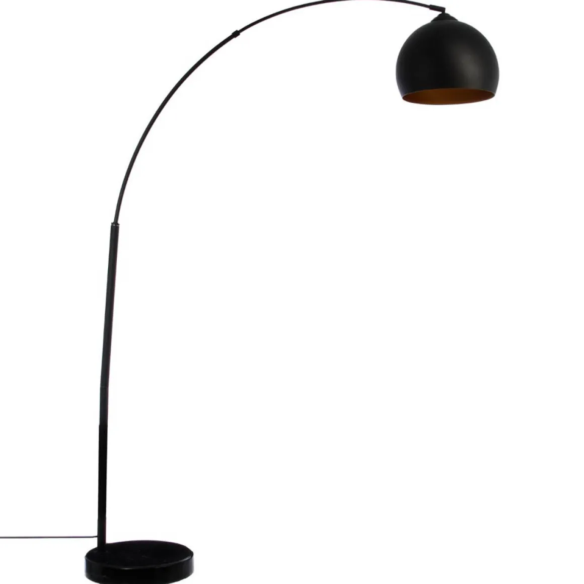 Lámpara De Pie Hyto Negra De Metal 177Cm | Bombilla no incluida | Pantalla interior de cobre dorado | Funciona con corriente eléctrica | Portalámpara: E27 | Potencia 40W | Descubre este y otros artículos de iluminación en hôma para iluminar y decorar tu hogar. | Color: Negro | Medidas: 177x30x110cm | Material: Hierro, Mármol | Marca: Atmosphera