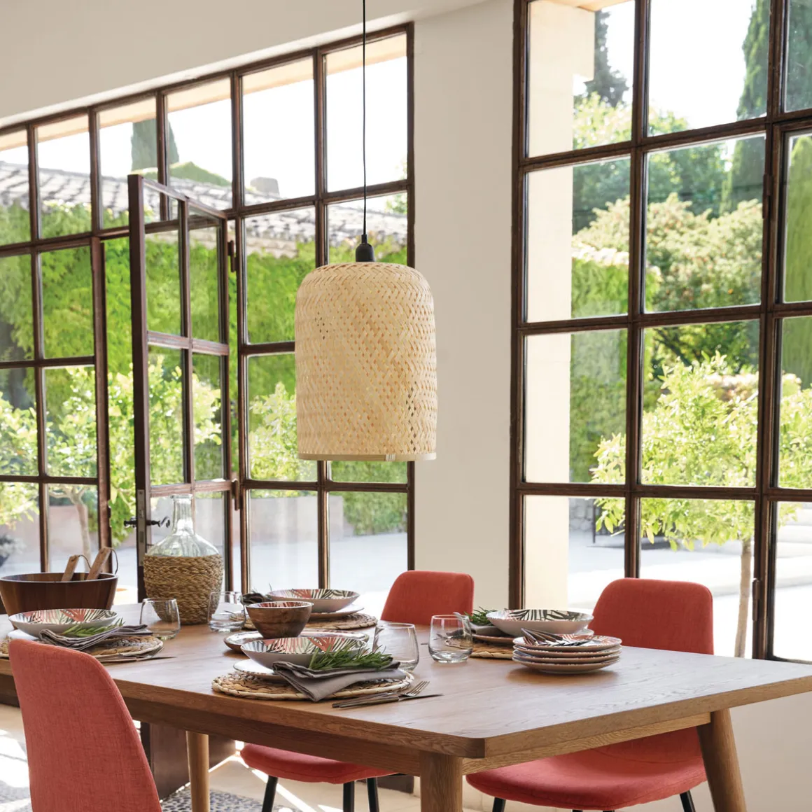Lámpara de techo ALI beige de bambú 28cm | Descubre este y otros artículos de iluminación hôma para iluminar y decorar tu hogar | Color: Beige | Medidas: 28x28x37cm | Material: Bambú y Metal | Marca: Atmosphera
