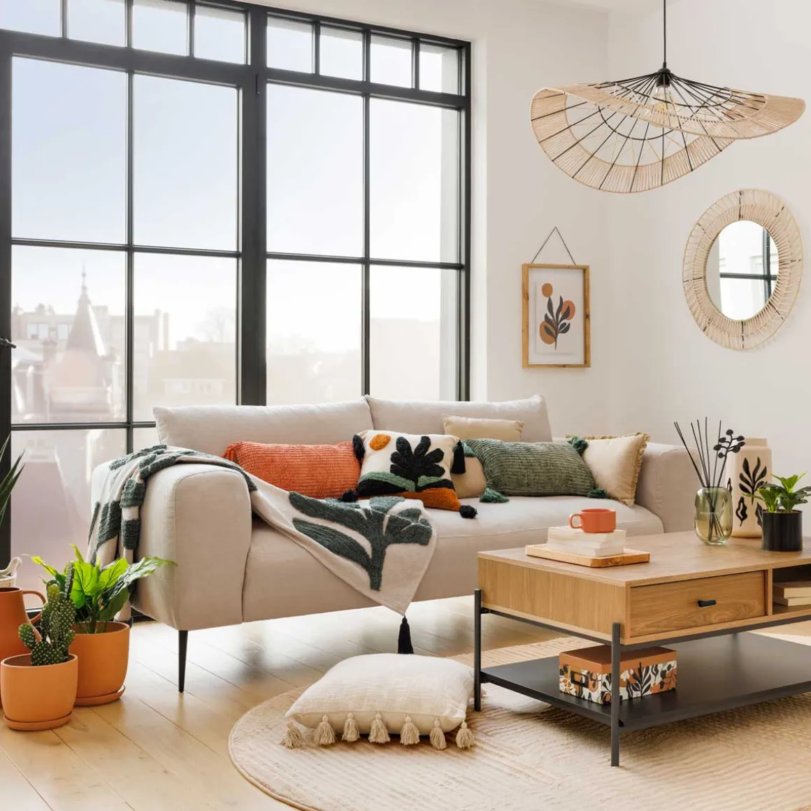 Lámpara De Techo Caravane Beige y Negro | 75×29.5x72cm | Bombilla no incluida | Portalámpara: E27 | Potencia máxima: 40W | Medidas del cable: 80cm | Descubre este y otros artículos de iluminación en hôma para iluminar y decorar tu hogar | Color: Beige, Negro | Medidas: 75×29.5x72cm | Material: Hierro, Papel | Colección: Caravane | Marca: Atmosphera