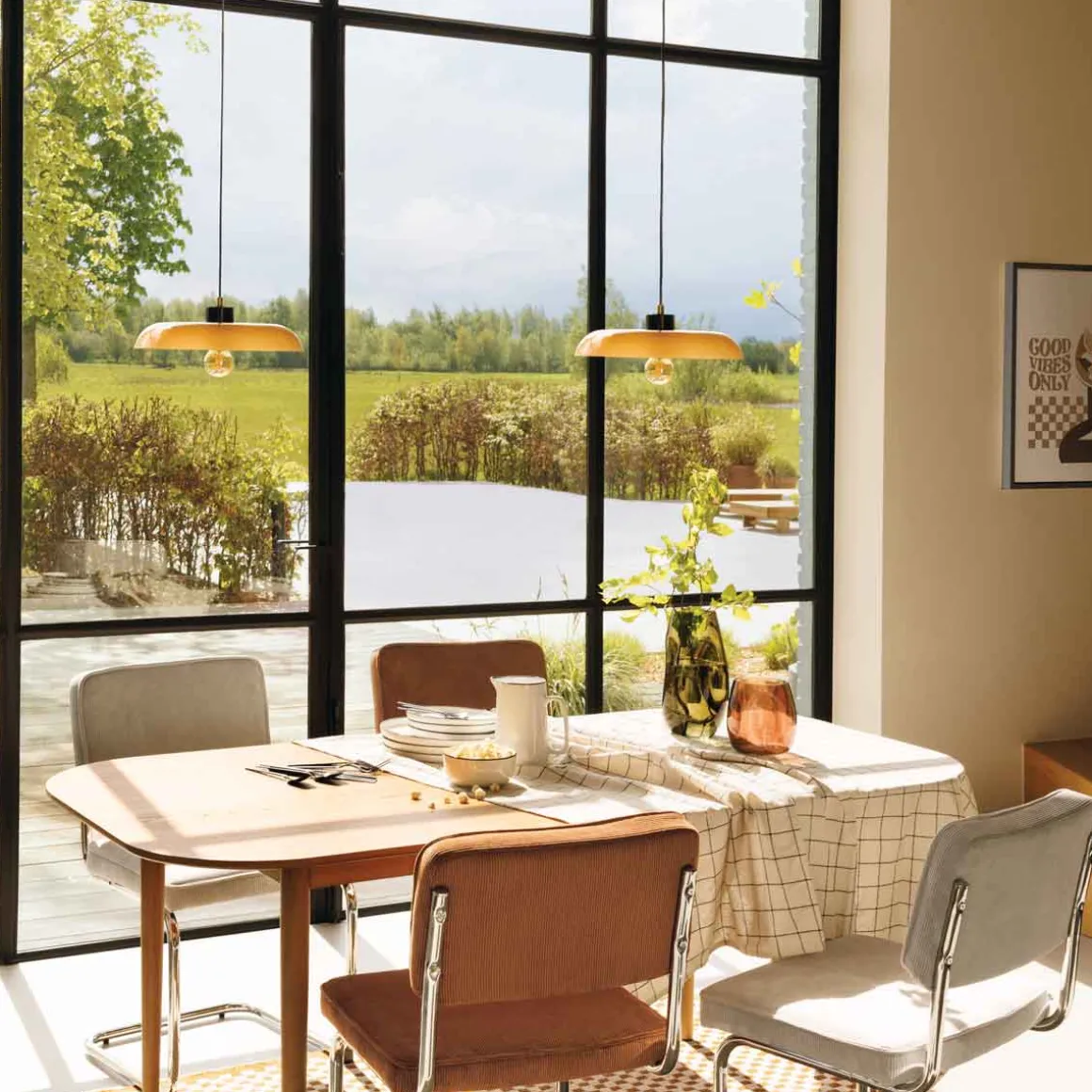 Lámpara de techo de vidrio JODY | 35x95cm | Bombilla no incluida | E27, 40W | Medidas del cable: 80cm | Descubre este y otros artículos de iluminación hôma para iluminar y decorar tu casa. | Color: Ámbar, Negro | Medidas: 35x95cm | Material: Vidrio | Marca: Atmosphera