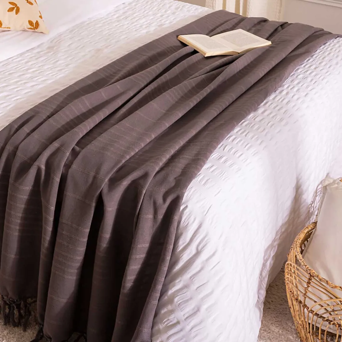 Manta Gris Con Flecos 230x250cm | La colección textil hôma reúne propuestas únicas para personalizar tu hogar. Desde cojines decorativos y fundas de cojín hasta las mantas más confortables, ¡vive en tu hogar con toda comodidad! | Color: Gris Oscuro | Medidas: 230x250cm | Material: Algodón