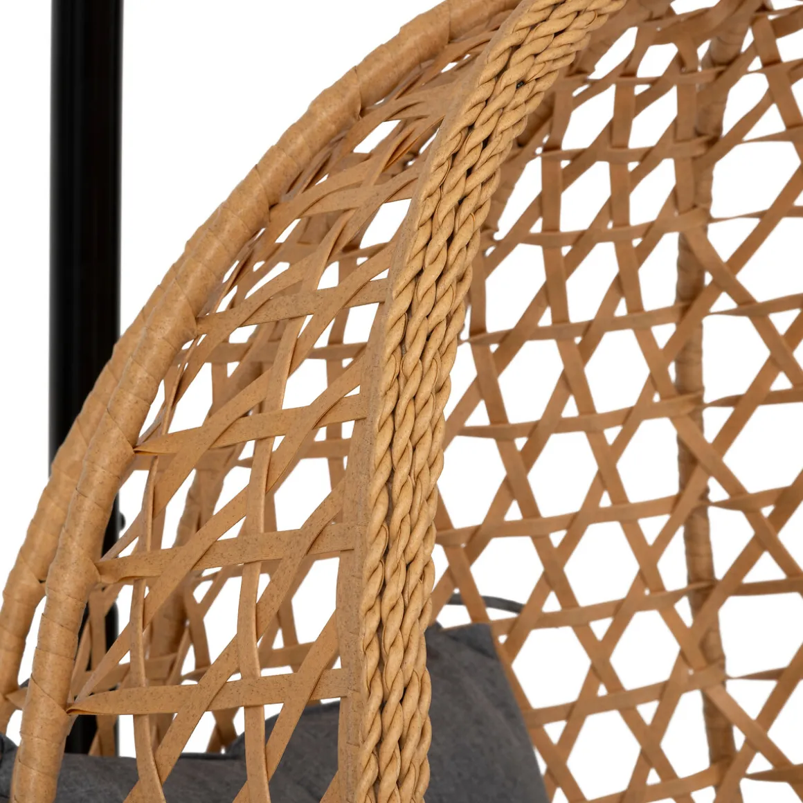 Mecedora gris pardo con cojín blanco | Medidas: 195x65x82cm | Material: Acero, Ratán Sintético y Poliéster | Peso máximo soportado: 110Kg