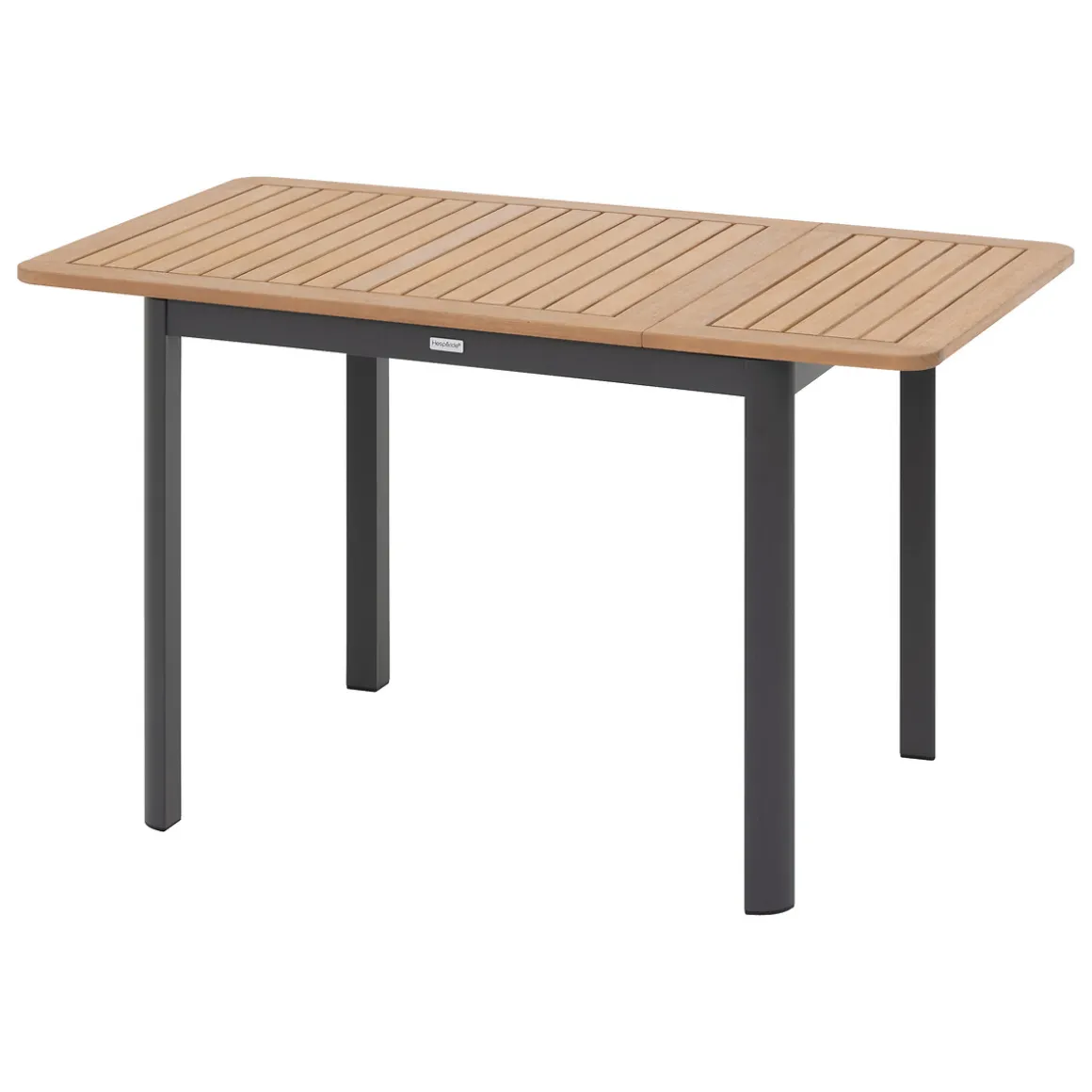 Mesa extensible FOLYA de aluminio y madera de eucalipto | Para 4 Personas | 89-125x70x75cm | Madera FSC, protegida con barniz o aceite. Estructura tratada con epoxi antioxidante. Fácil de montar. Gracias a su extensión plegable, la mesa se adapta al número de comensales | Marca: Hésperide